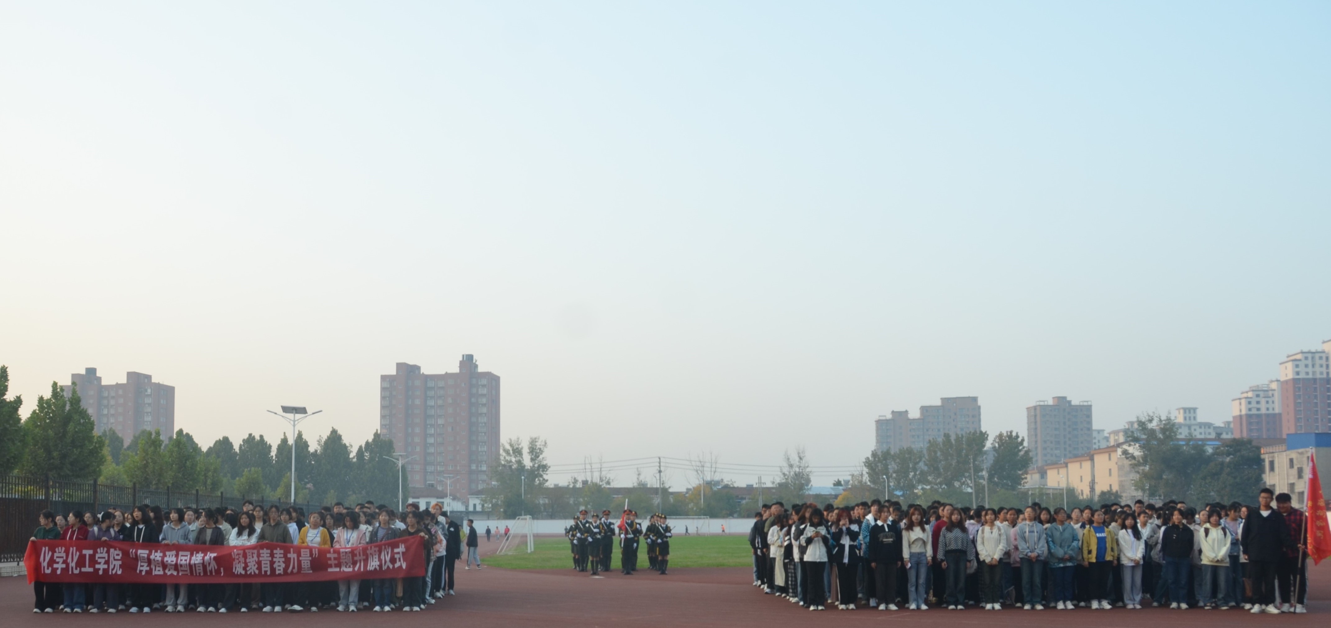最后,李海涛书记讲话。他强调要继续加强我院党的建设,将爱国主义情感转化为青年的实际行动,广大青年学子有责任,有义务为祖国的繁荣和强大贡献青春力量。希望我院学子能够勇于担当,积极投身于科技创新,将个人发展与国家的前途命运紧密联系。不断追求卓越,以更加坚定的信念和热情投身于学习中,为建设中国特色社会主义,实现中华民族伟大复兴而努力奋斗。整个升旗仪式在激昂的氛围中落下帷幕。