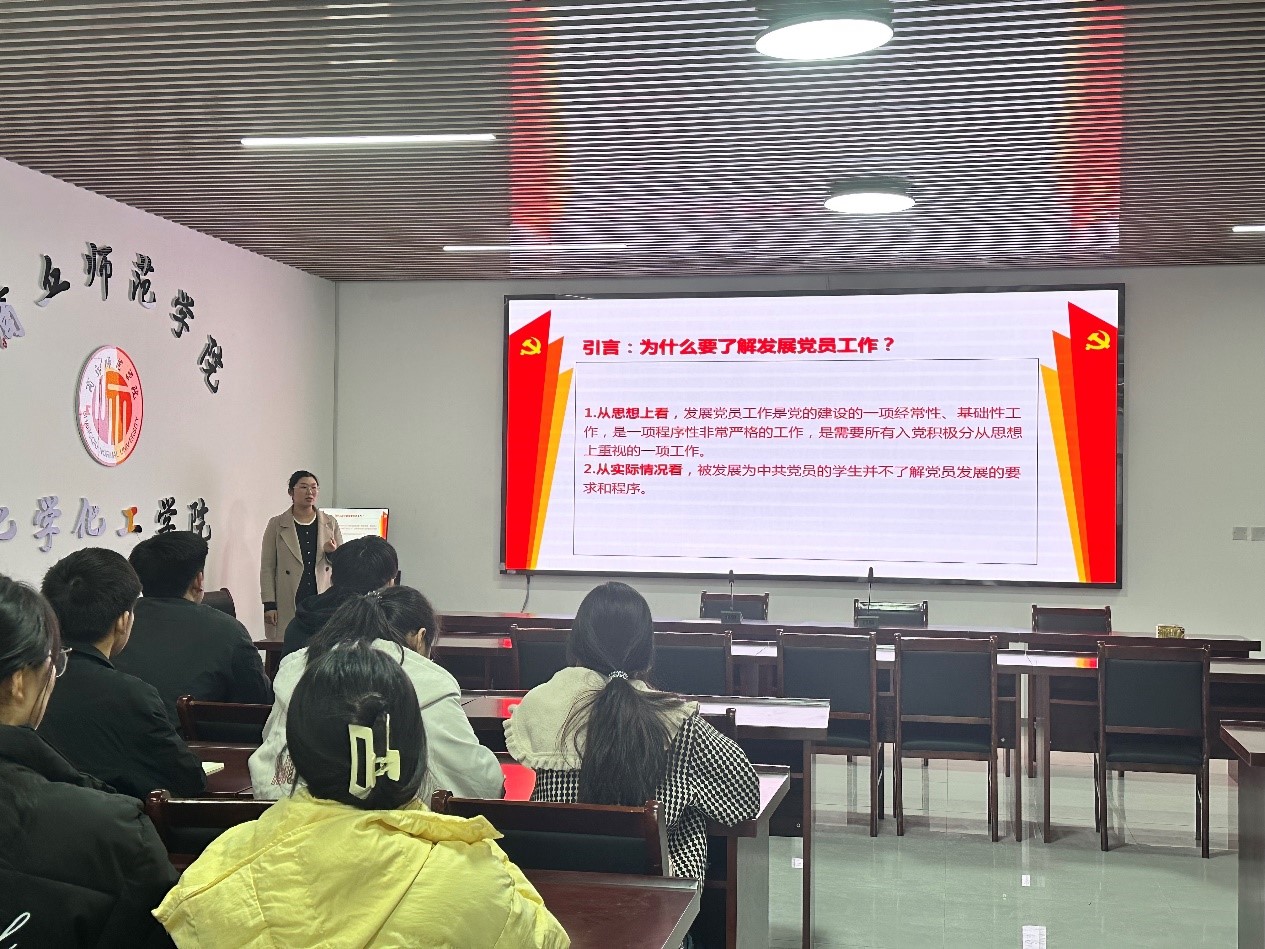 3月31日,第56期中级入党积极分子培训班第一次专题授课在工科实训大楼B309会议室进行,王舒欣以发展党员工作程序和要求为专题进行授课。带领大家围绕入党流程、培养考察、材料填写等方面进行了详细讲解,帮助学员们明确发展党员的标准和程序,进一步增强对党组织的认识。
