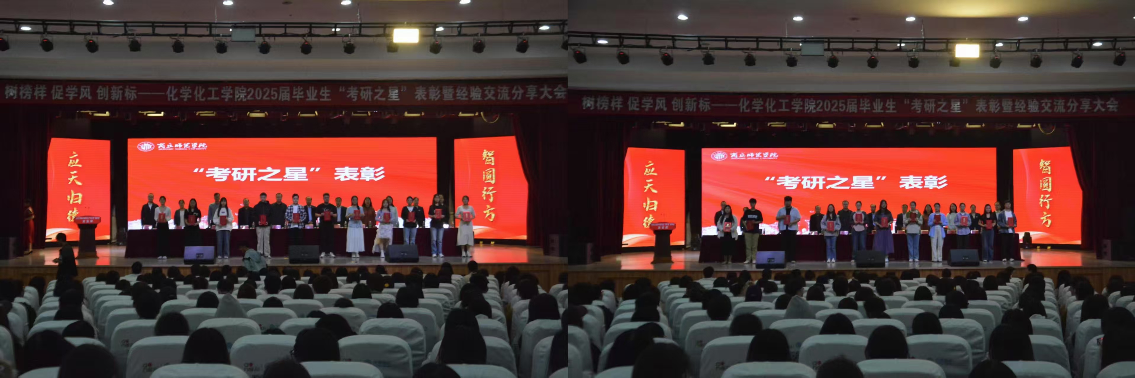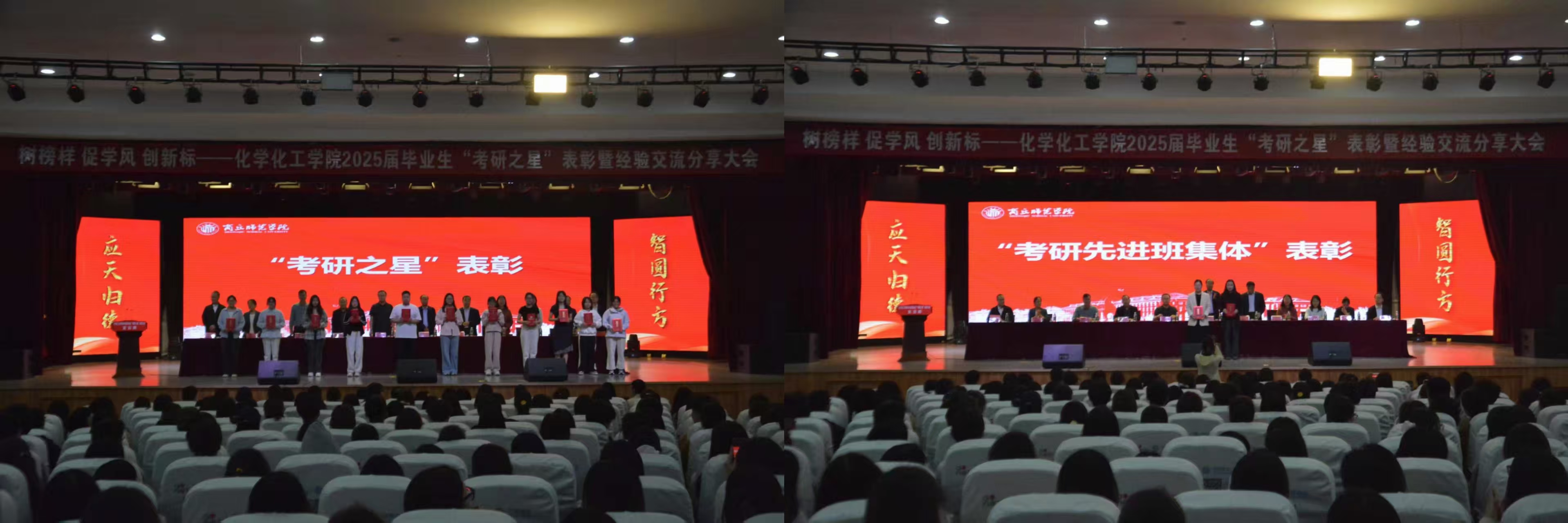 表彰大会在庄严的国歌声中拉开序幕。学生处处长韩坤首先宣读了化工学院关于表彰2025届毕业生“考研之星”及2025年“考研先进班集体”的决定。随后,主席台领导为“考研之星”代表和“考研先进班集体”代表颁奖。
