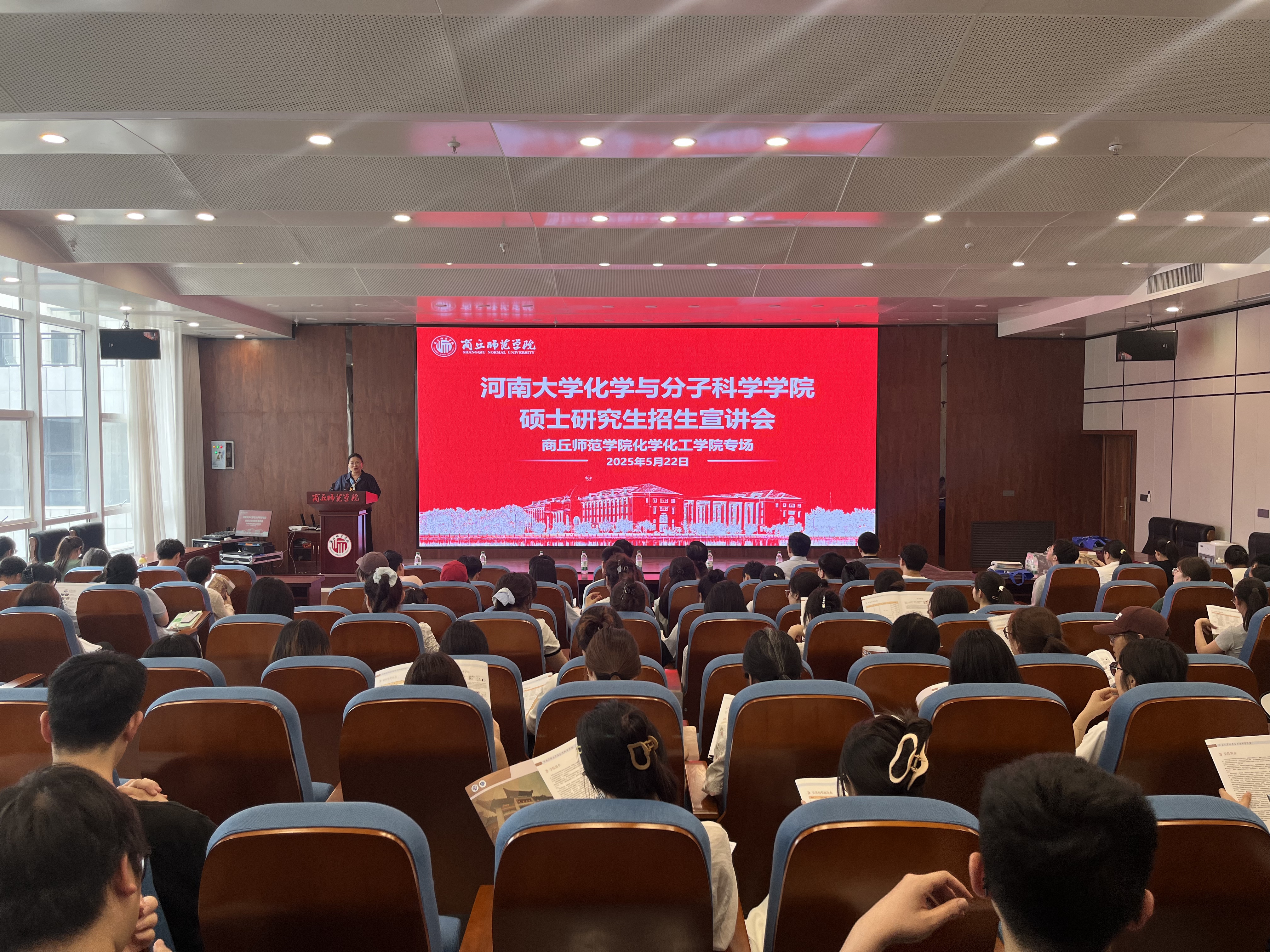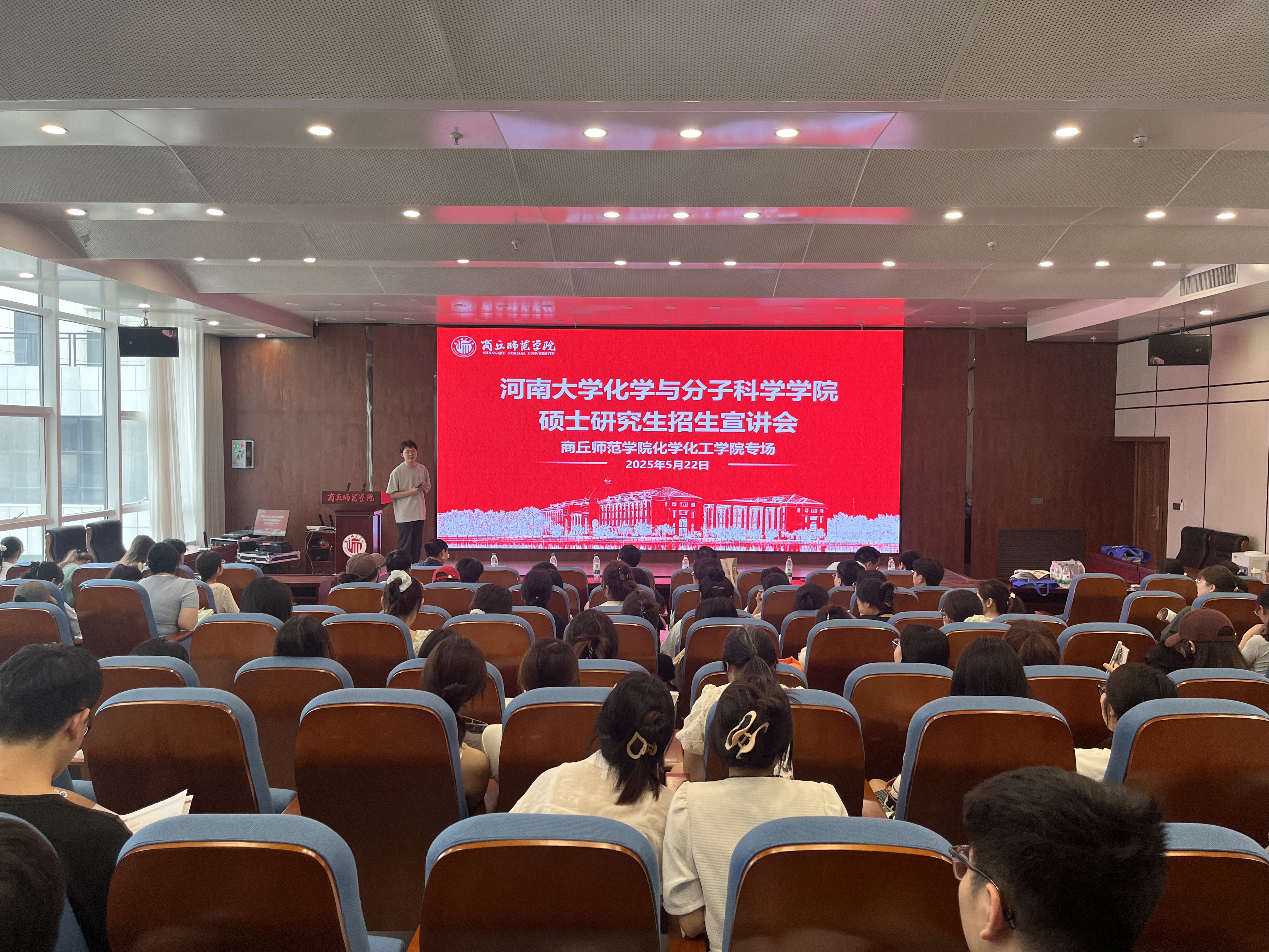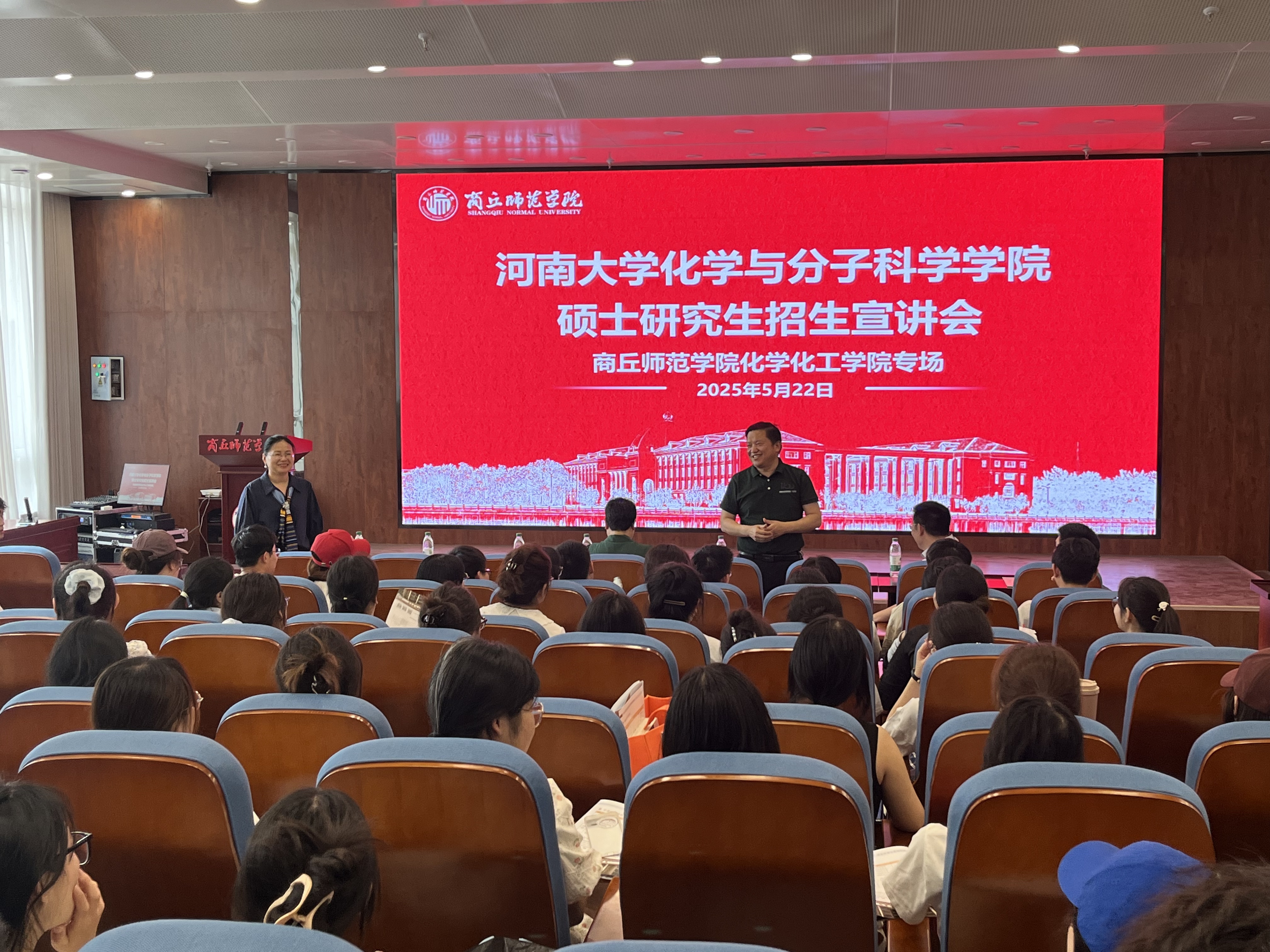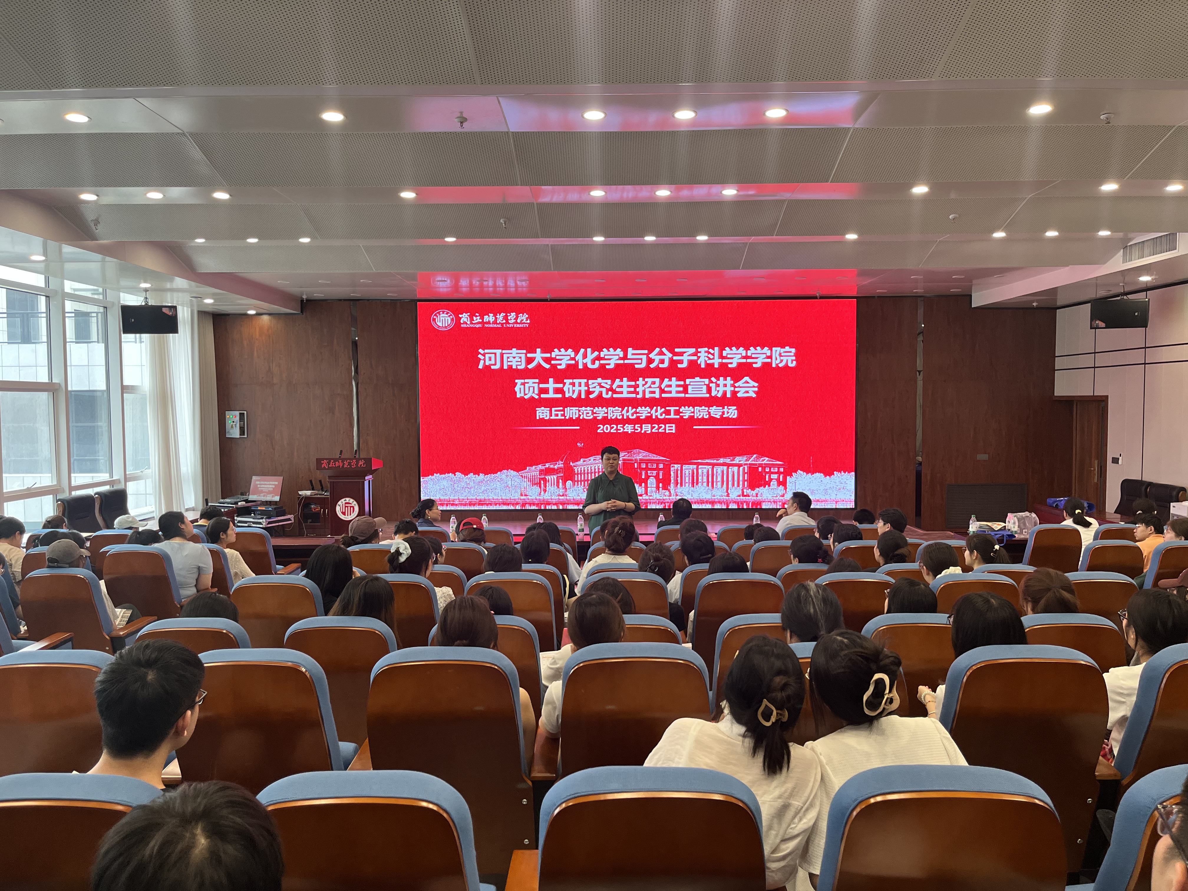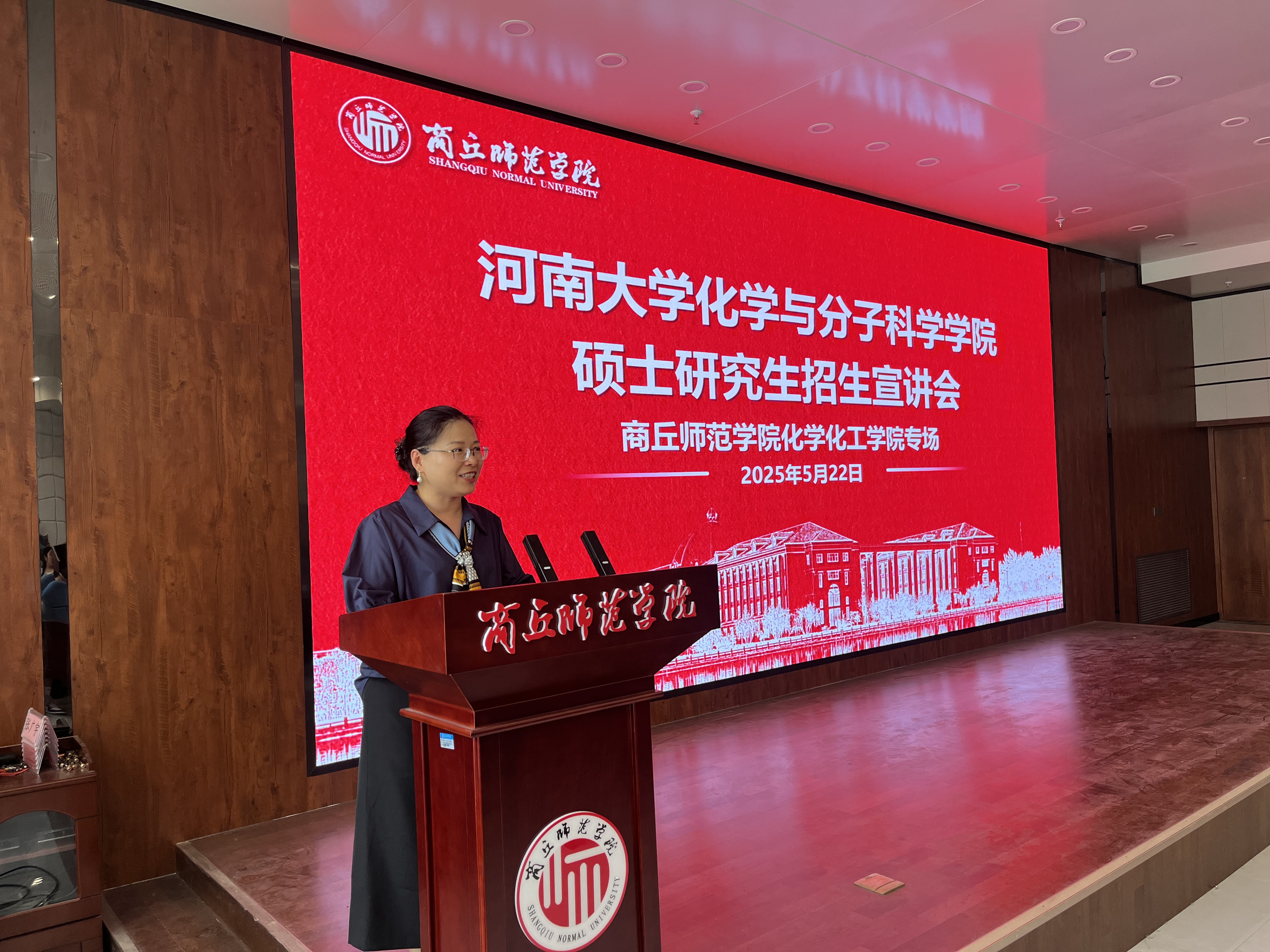 5月22日,河南大学化学与分子科学学院硕士研究生招生宣讲会在我校睢阳校区工科实训大楼203报告厅顺利举行。河南大学化学与分子科学学院党委书记常凤香一行5人走进我院进行交流指导。通过政策解读、学术分享与互动答疑,为我院备战考研学生提供精准、有效的指导与帮助。会议由麻豆精品㊙️国产传媒AV党委副书记张颜梅主持。