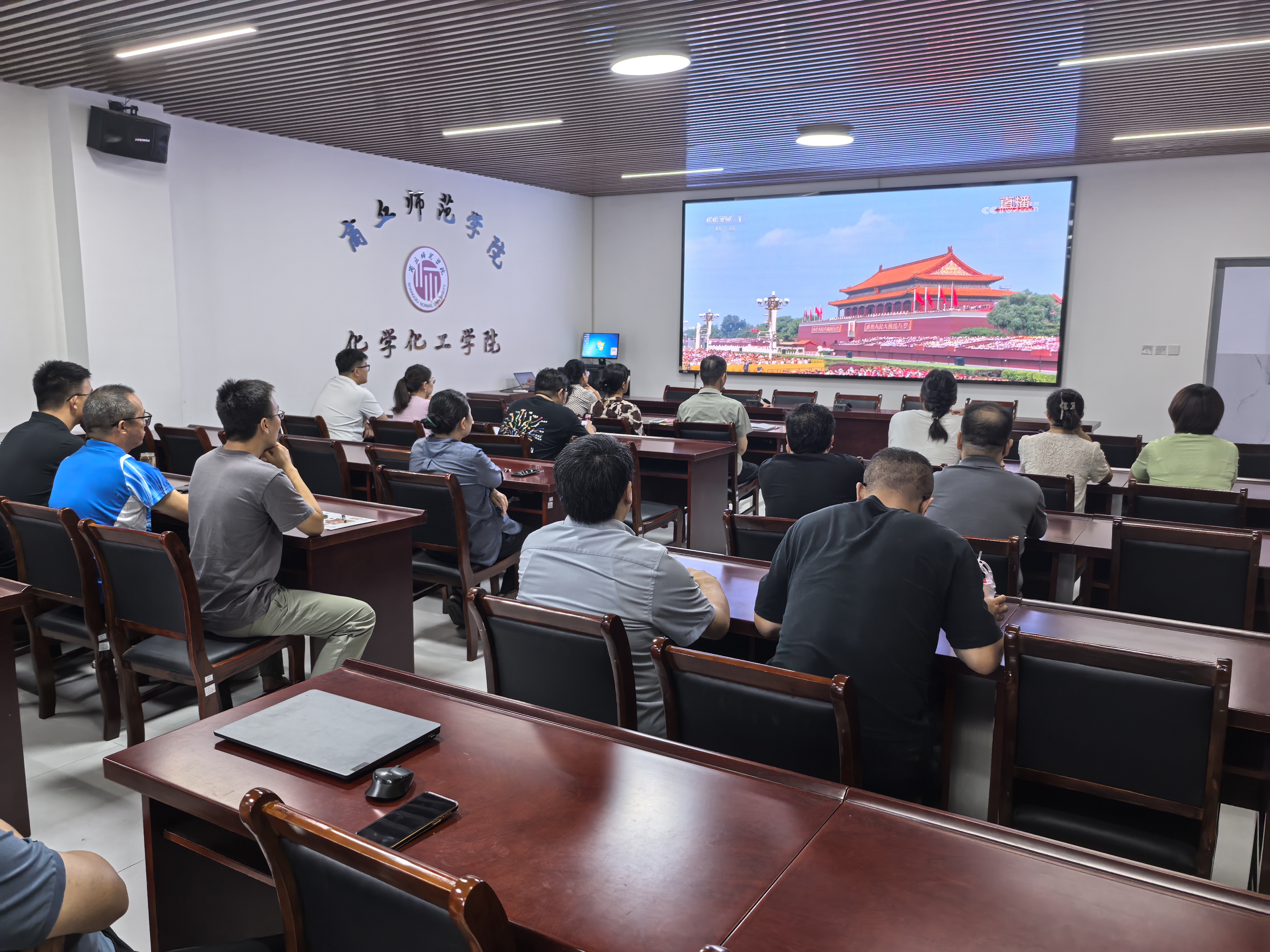 为弘扬伟大抗战精神,增强师生党员爱国情怀和历史责任感,9月3日上午,我院积极组织师生通过多种形式观看纪念中国人民抗日战争暨世界反法西斯战争胜利80周年阅兵式。学院领导班子、科级以上干部及教师各党支部在会议室线下集中观看直播,学生党员通过线上平台同步参与。全体师生党员同频共振,在庄严肃穆的氛围中缅怀抗战先烈,深刻体悟抗战胜利的伟大意义。