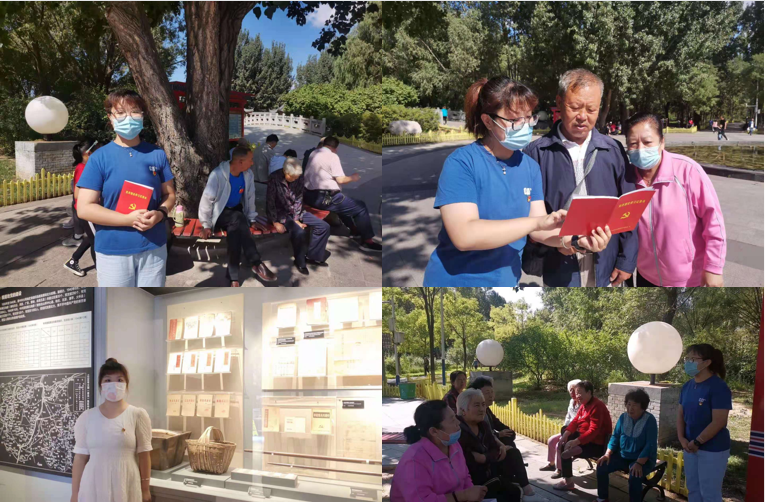 活动过程中,郝美红与公园乘凉的老人进行了热情交流。她向奶奶们介绍四史的概念和意义,奶奶们则热情地向成员们分享她们与党的故事,并感慨到“我们爱共产党,是因为是共产党才有了我们的现在”。朴实的言语中透露出浓浓的拥党爱党情、爱国情,以及作为中国人的自豪感。