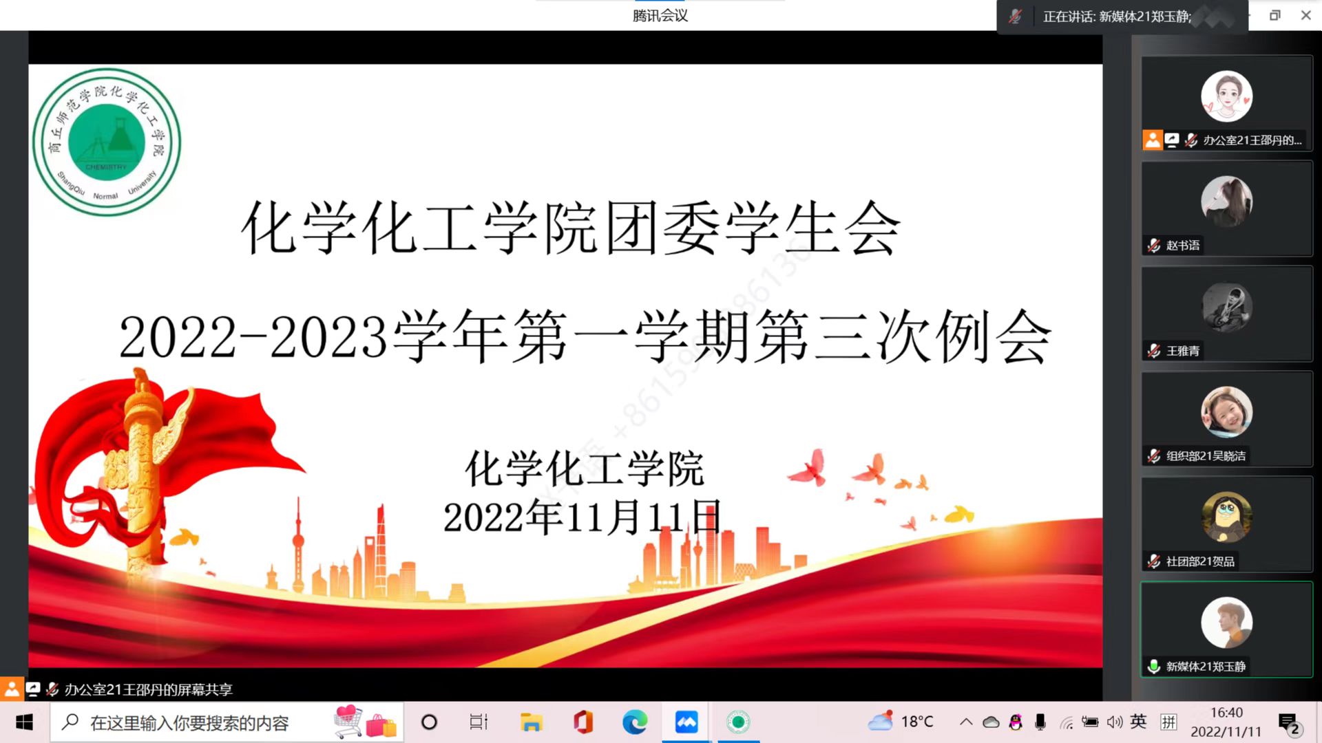 11月11日,麻豆精品㊙️国产传媒AV团委学生会以腾讯会议的形式召开了2022-2023年第一学期第三次例会,院团委学生会全体成员参加。