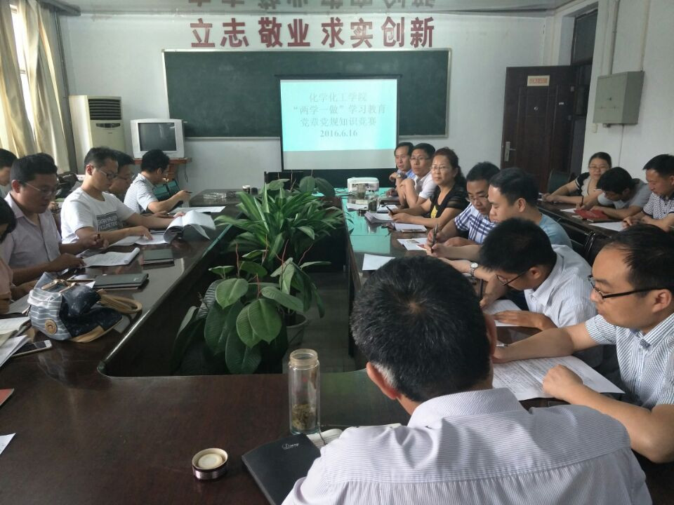 为扎实推进 “两学一做”学习教育工作,进一步激发师生党员自觉学习党章党规的积极性,加强党性修养,提升理论水平和工作能力,按照校党委的统一部署和院党总支的工作安排,6月16日下午,我院在文化路校区七号办公楼会议室举行了“两学一做”学习教育党章党规知识竞赛,全体教工党员和学生党员参加了此次竞赛。