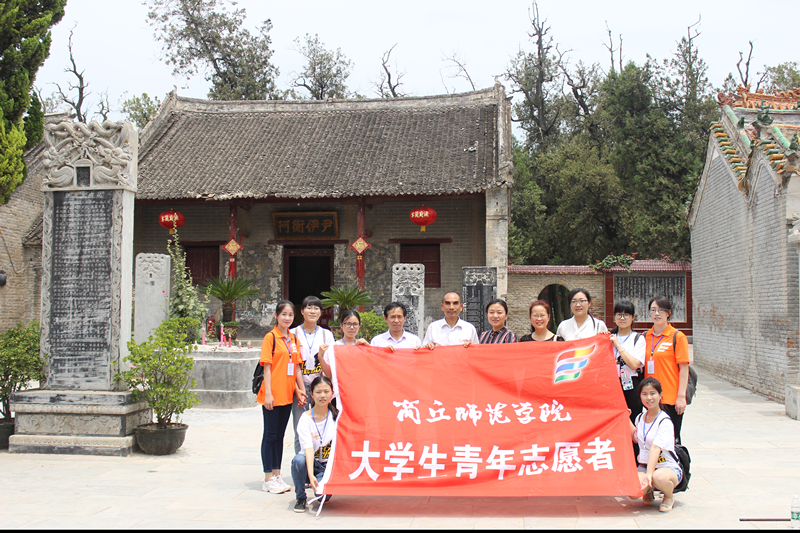 麻豆精品㊙️国产传媒AV理论普及宣讲团“致敬红心”实践活动走近老党员实践团历时三天,在团长赵聪聪的带领下井然有序地进行。7月3日上午,在校团委副书记张彤、麻豆精品㊙️国产传媒AV党总支书记邱友良、副院长刘瑛和团总支书记李龙梅的带领下,实践团来到了虞城县伊尹祠。