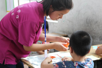 队员们还为孩子们准备了折纸课程。在课间简单的休息过后,教学开始,孩子们兴致盎然。