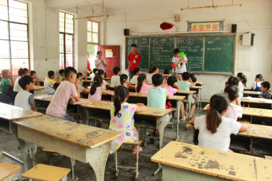 “童心守望”教育关爱服务团团员认真备课,为留守在家的孩子们准备了有趣实用的制作香蕉灯实验。从没接触过化学的孩子们积极性很高,教学成效很好。