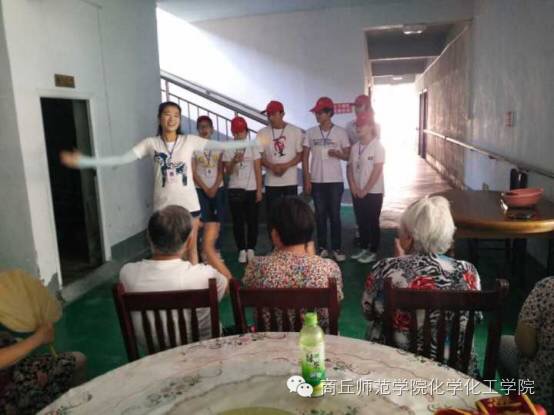 团队成员各施其材,准备了古典舞、个人独唱、团队合唱等一些精彩的小节目。为庆祝建党95周年,团队成员为老人进行了《国家》等爱党爱国类歌曲的合唱及其手语表演,为老人整理房间,做家务活,给老人亲手做上美味的饭菜,为老人送去一丝丝温暖。