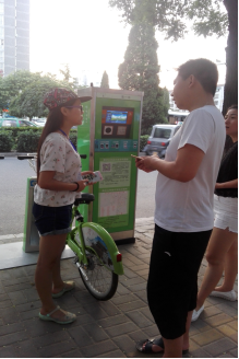 为了更广泛的宣传公共自行车的使用,让我们的生活更方便、更低碳,我院“低碳环保,文明出行”彩虹人生实践团于2016年7月2号到7月4号在商丘市一中的公共自行车站点进行。