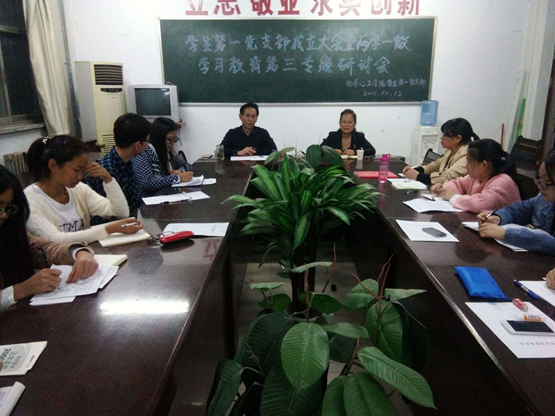 成立大会之后,三个学生党支部分别召开了两学一做学习教育第三专题研讨会。会上,各支部党员逐一对照“讲道德,有品行”标准,谈认识体会,反思修身律己情况,查摆自身存在问题,提出整改措施。最后,邱书记又做了认真的点评,指出了存在的问题,并提出了今后的努力方向。