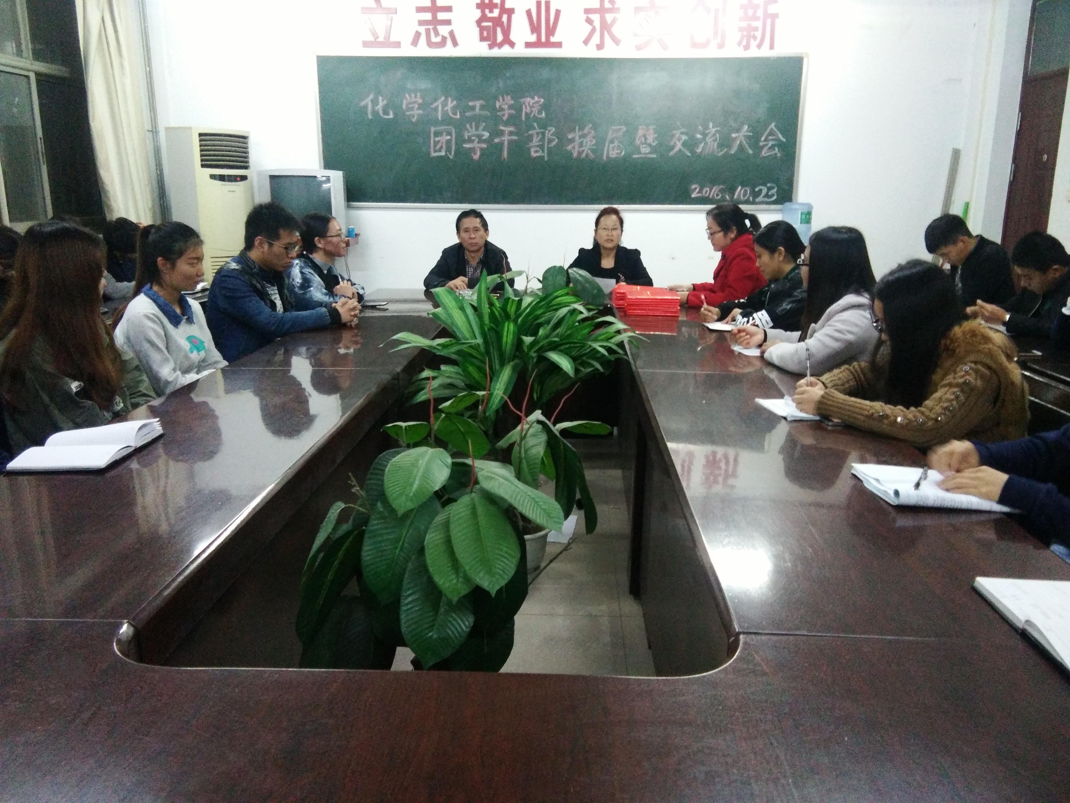 2016年10月23日,我院于七号楼会议室举行团学干部换届暨交流大会,我院党总支书记邱友良、副院长刘瑛、团总支书记李龙梅出席大会。会议由李龙梅老师主持。