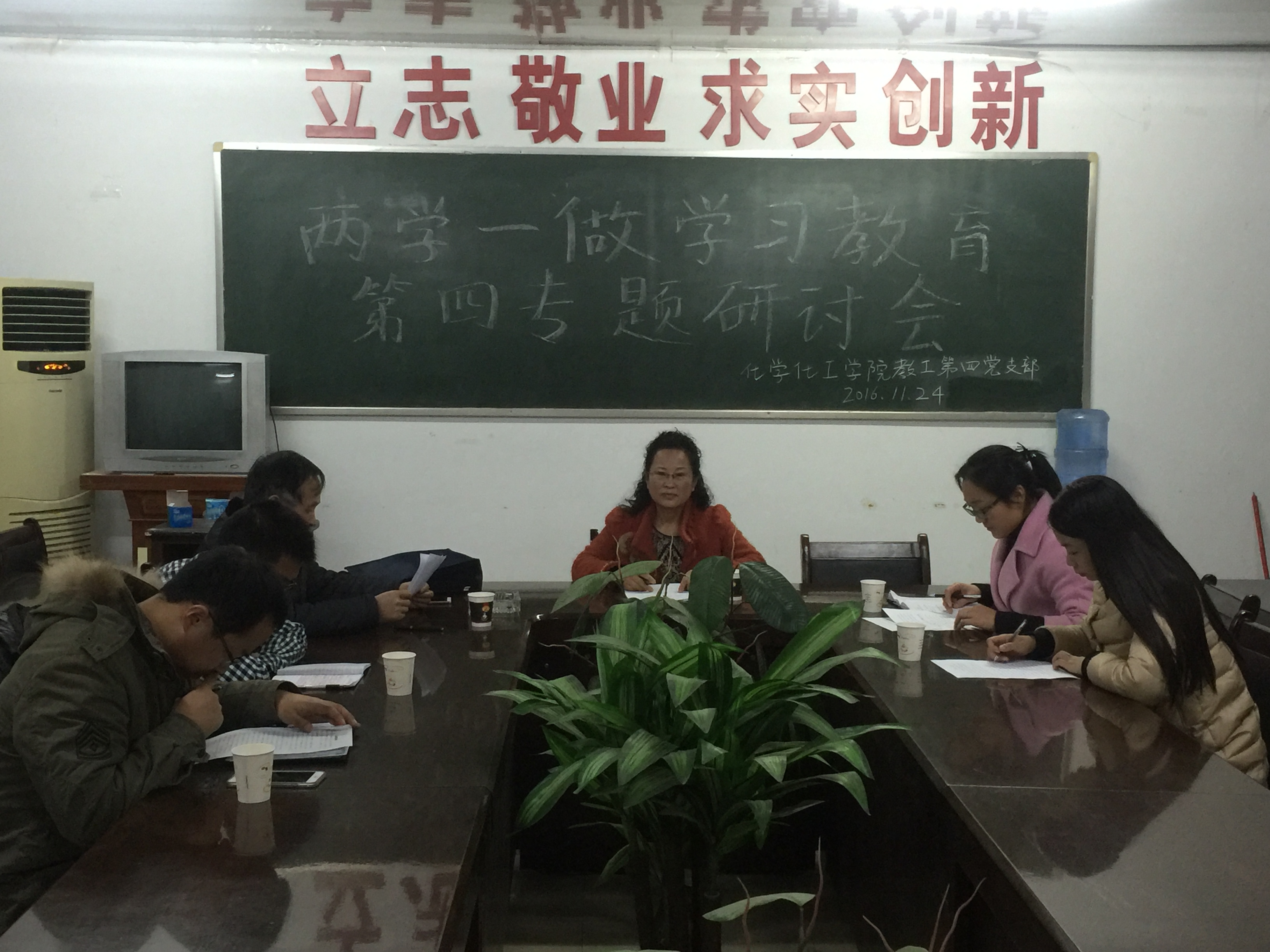 根据校“两学一做”学习教育工作安排,11月24日,我院教工第四党支部在院会议室召开了“两学一做”学习教育第四专题的学习研讨会。党支部全体成员参加了会议。会议由党支部书记刘瑛主持。