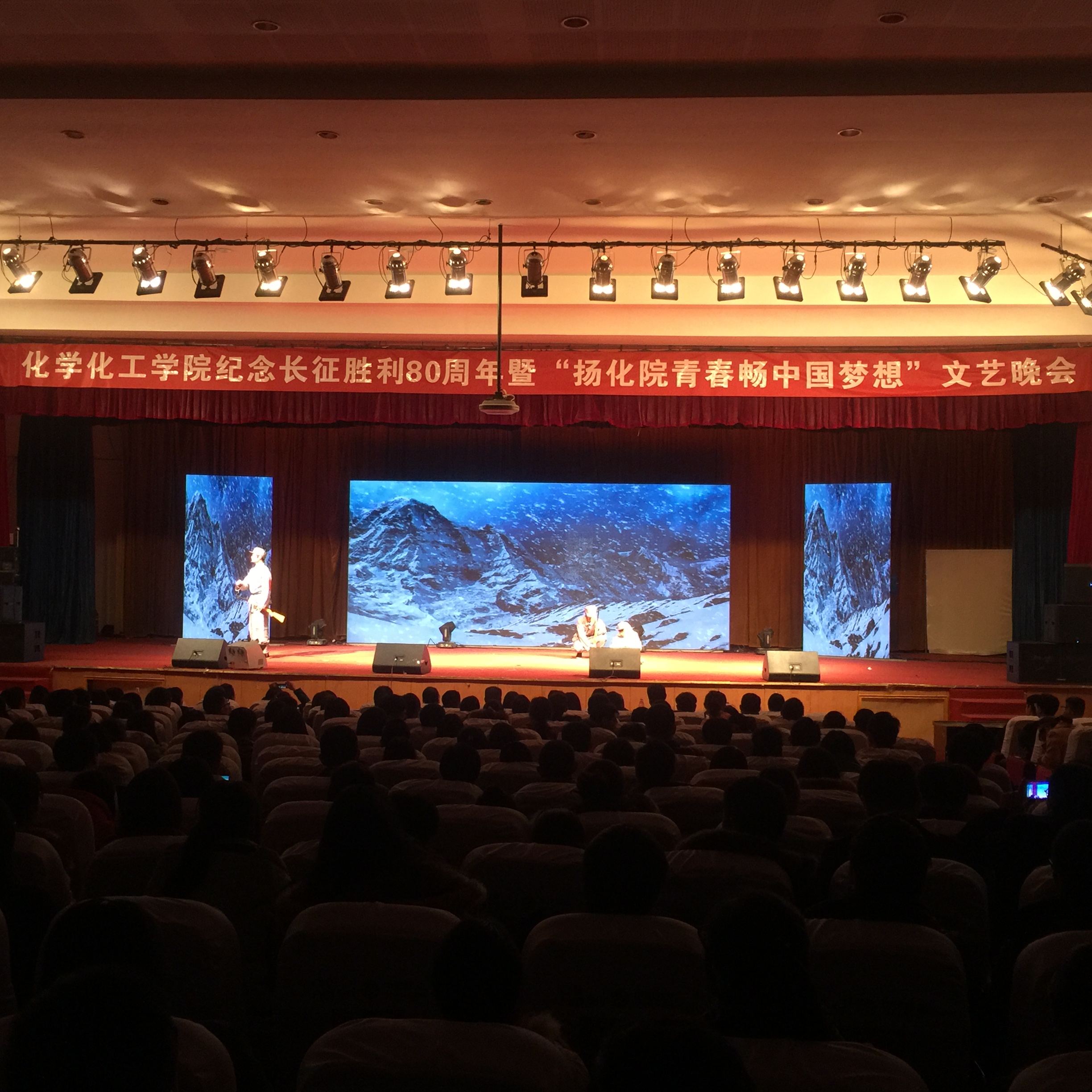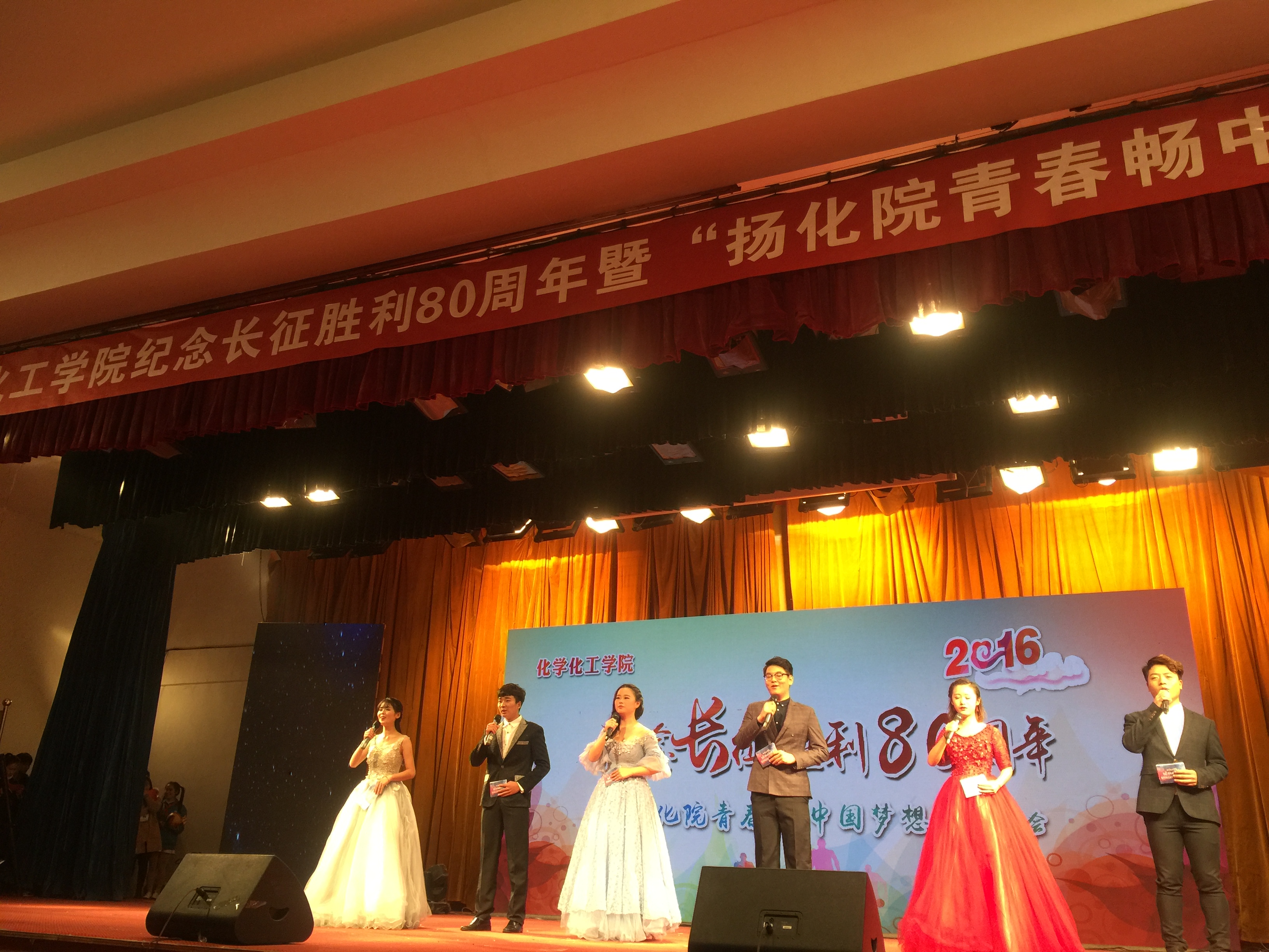 晚会由节奏欢快的《商师小苹果》、《健美操》两段开场舞拉开帷幕。在一段《栀子花开》VCR播放后,反串四小天鹅表演的芭蕾舞赢得掌声阵阵;随后话剧《人生》演绎了一对青梅竹马从相识、相恋到相伴的故事,实力派的表演感动了现场的观众。影子舞《傣族舞》、《拉丁》的表演将两位姑娘的婀娜多姿、优雅动人展现的淋漓尽致,紧接着一场热舞伴随《Bang Bang》爆发力十足的节奏将晚会推向高潮;相声《大众创新》赢得全场欢呼,歌曲串烧《被驯服的象+从你的全世界路过+告白气球+当爱在靠近》以默契的配合和动人的歌声给观众留下了深刻印象;话剧《倔强的小红军》有着沙画动画作背景,演绎了长征时红军们艰苦生活却仍具有坚持不懈的精神,感染了现场的观众;朗诵《长征颂》用激情澎湃的声音再现了红军长征的光辉历程,点燃了同学们心中的那团“祖国需要我”之火。晚会最后,全体师生合唱一首经典的《光阴的故事》。至此晚会圆满落幕。