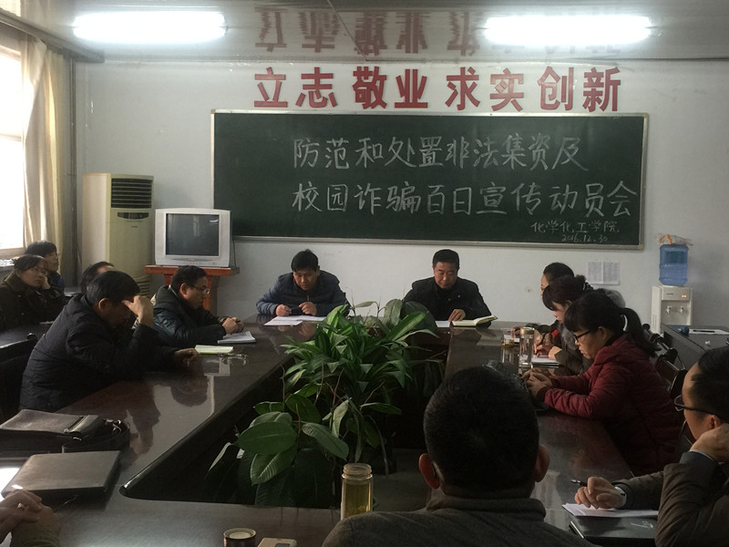 动员会上,韩书记首先宣读了党政办字(2016)4号《关于开展防范和处置非法集资及校园诈骗百日宣传活动的通知》,针对非法集资,主要强调了国家关于打击和处置非法集资的有关法律、法规和政策,并向广大师生介绍了非法集资的特征、表现形式和常见手段,使其充分意识到自己应自觉远离、抵制非法集资。随后,针对近期高校校园频发的诈骗事件指出,要大力开展网络安全和金融知识教育,增强学生对网贷业务的甄别能力,同时,要求教师和辅导员要教育和引导在校大学生树立正确的消费观念,提高自身防范能力。