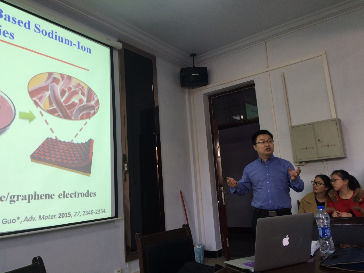 在学术报告中,王华老师首先提出未来的储能设备的发展方向是生物质储能,接下来以自己的几个研究实例,如生核桃外皮,跟大家介绍了当前生物质储能的研究进展。接着又向大家介绍了柔性可穿戴储能设备的研究进展,他们研究小组研制出了“电线电池“的雏形,为未来便携式移动电源设备做出了贡献。最后,王老师和部分考研同学进行了交流和对话,介绍了导师对学生的几点基本要求,并鼓励他们不畏艰苦,做好研究生课题。