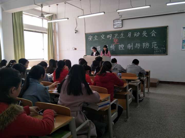 为全面贯彻落实党的十八届五中、六中全会精神和我校三次党代会精神,增强学生的安全文明意识,我院组织各团支部于3月3日下午在文化路校区1号楼和6号楼各班自习室召开了“安全文明卫生月活动动员暨网络舆情控制与防范”主题班会。