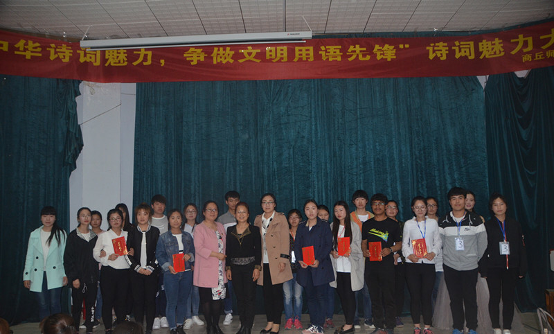 为了让同学们更深入地了解中华诗词之美妙,4月27日晚,我院于我校文化路校区物理实验楼物理报告厅举办了“品味中华诗词魅力,争做文明用语先锋”诗词魅力大赛决赛。校团委副书记蒯秀丽、我院党总支副书记刘瑛、团总支书记李龙梅、生物与食品学院团总支副书记及校团委会成员出席了本次比赛,我院团总支学生会成员及16级全体学生参加了此次比赛。