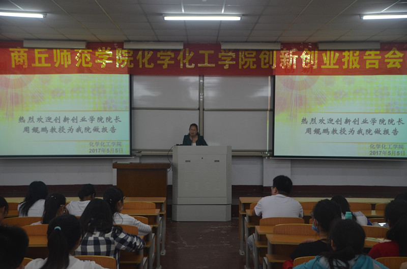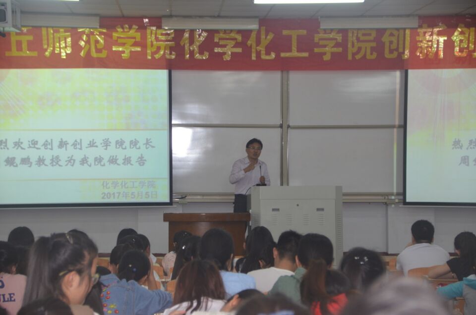 为增强学生的创新创业意识,激起学生的创新创业热情,5月5日下午1点,创新创业学院院长周鲲鹏教授应邀在文化路校区1号教学楼107教室为我院做报告,我院党总支副书记刘瑛、团总支书记李龙梅出席了此次报告会,我院2016级全体学生和其他各年级学生代表参加了此次报告会,报告会由刘瑛副书记主持。