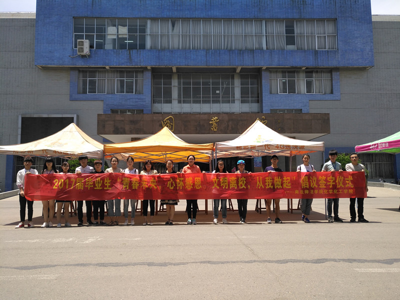 5月24日中午,我院于我校文化路校区图书馆门前举行了2017届“青春未央,心怀感恩,文明离校,从我做起”倡议签字活动。我院党总支副书记刘瑛,团总支书记李龙梅,13级辅导员郭家瑞参加了此次活动,与同学们一起为毕业生送上满满的祝福。
