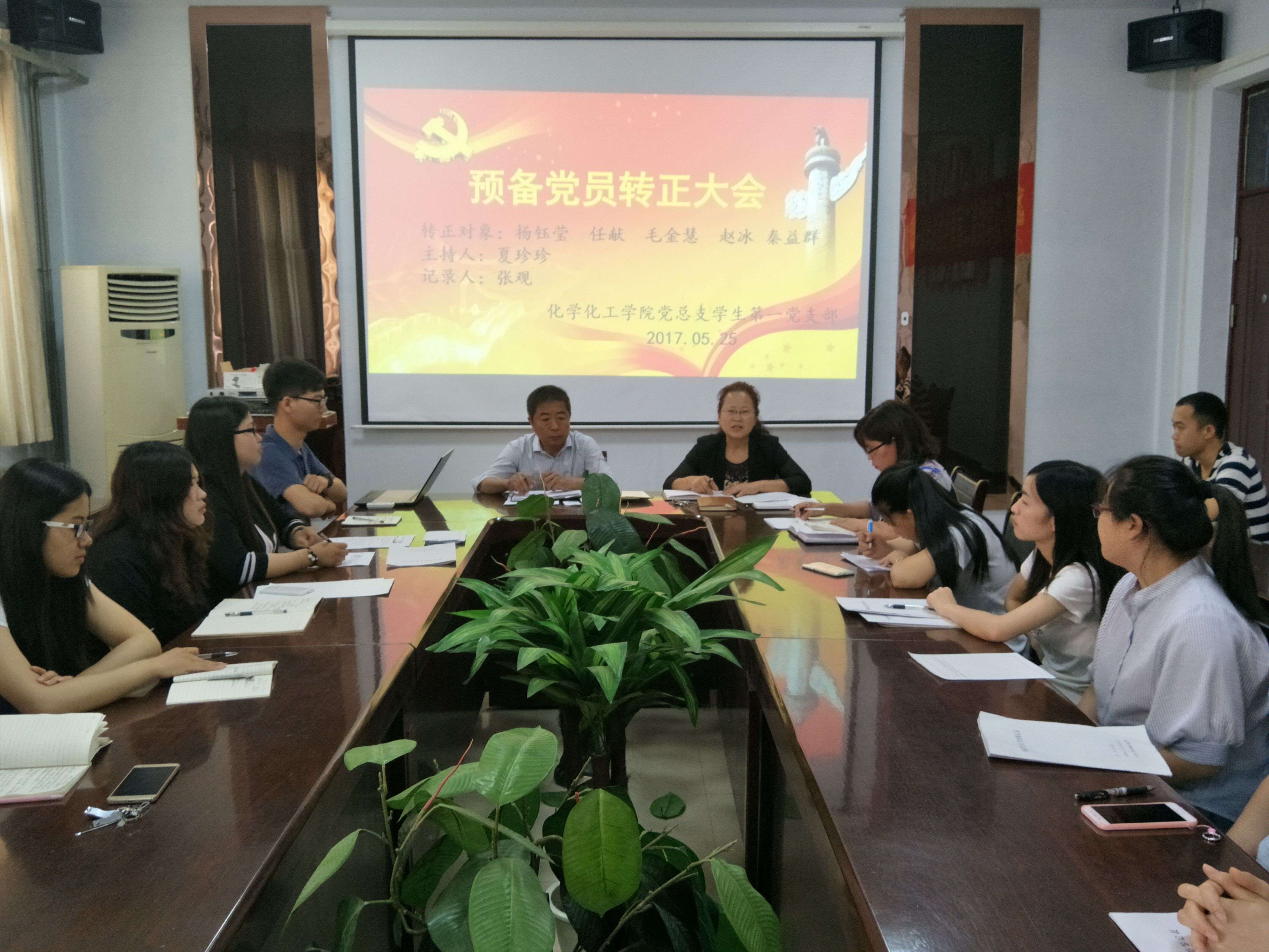 2017年05月25日,我院党总支学生第一、第二、第三党支部分别于七号楼院会议室召开预备党员转正大会,讨论关于杨钰莹等16名同志按期转为中共正式党员的问题。我院党总支书记韩忠民、党总支副书记刘瑛出席会议、辅导员刘双、李可刚、郭家瑞及各支部党员参加会议。