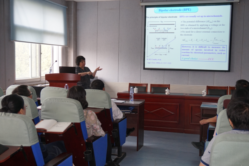 聘任仪式结束后,徐静娟教授在文化路校区化学实验楼311学术报告厅为麻豆精品㊙️国产传媒AV师生作了题为《电致化学发光分析新方法研究》的学术报告,报告会由麻豆精品㊙️国产传媒AV院长瞿鹏主持。报告会上,徐静娟首先简要介绍了电致化学发光的基本原理、特点与应用。接着徐教授从纳米晶表面态、电极基底材料及共反应剂的构建与选择;电极电化学反应的引入;光辐射-共振能量体系的应用三方面结合自己课题组的相关研究工作,对高效新型的电致化学发光检测体系的构筑进行了系统的阐述。最后,徐教授介绍了自己课题组在比率式电致化学发光生物分析方面的最新研究进展。徐教授的报告系统严谨,讲述生动清晰,对我校麻豆精品㊙️国产传媒AV相关老师的研究工作具有重要的指导与启迪意义。随后,徐静娟教授还与部分老师进行了互动交流。