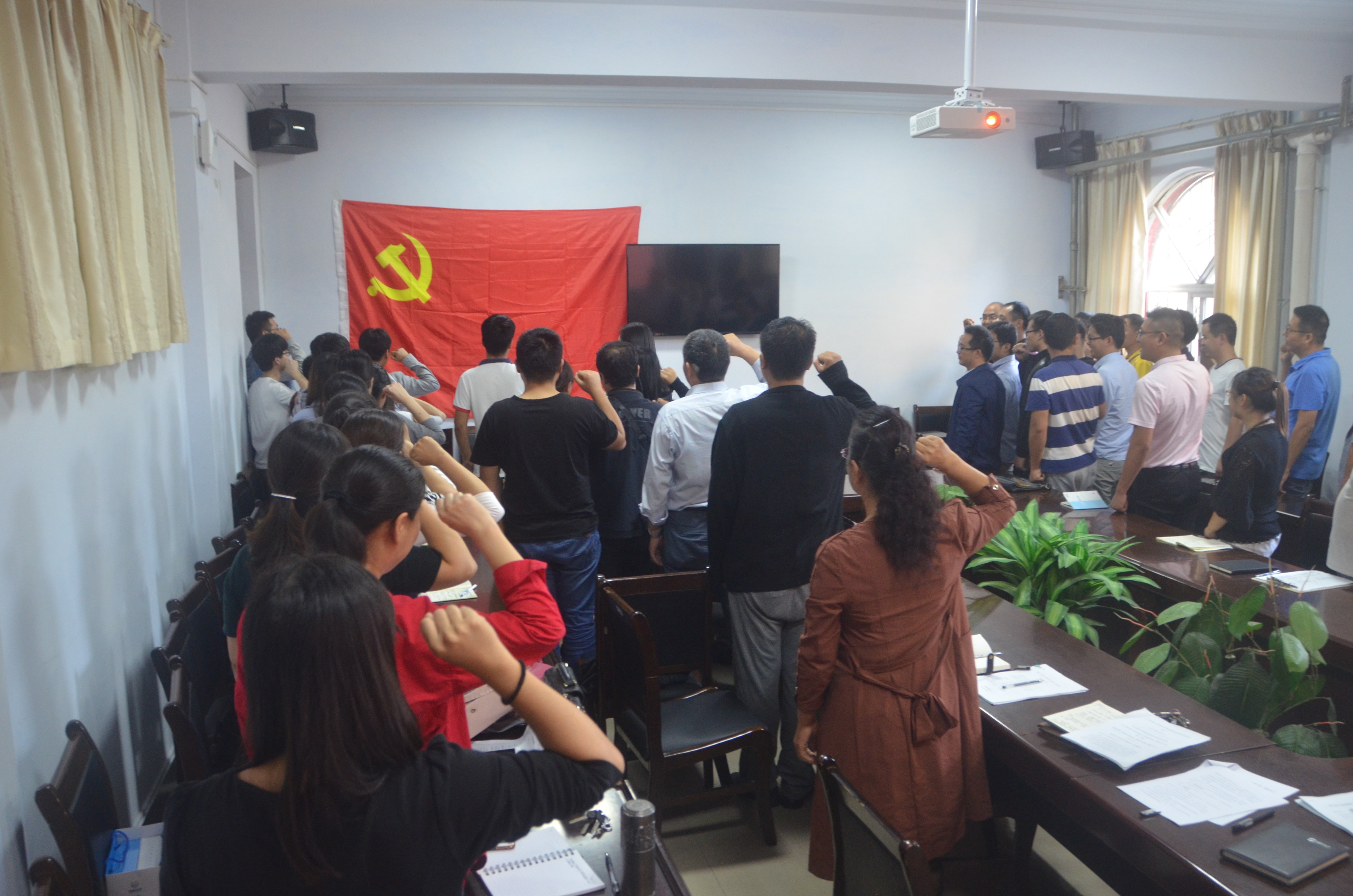 会议中,刘书记先传达了中共商丘师范学院委员会组织部关于转发《中共商丘市委市直工委关于开展“砥砺奋进,党员当先锋,筑梦中国,喜迎十九大”主题党日活动的通知》的通知,并宣读了《中共商丘师范学院委员会关于开展“喜迎十九大,展示新面貌”主题系列活动的通知》,她希望各党员通过此次会议能够提振精气神、弘扬正能量,在以习近平同志为核心的党中央领导下,按照校党委的决策部署,努力做好本职工作,以最好的状态和精神迎接十九大的胜利召开。接着,在团总支书记李龙梅老师的带领下,全体老党员重温了入党誓词,新发展的党员进行了入党誓词宣誓,那一声声铿锵有力的宣誓都展现了我院党员对党和祖国的热爱。最后,韩书记指出各位新党员要做到对党忠诚、严于修身、履职尽责、担当作为,砥砺奋进,和各位老党员同志共同努力,做好各项工作,一起迎接十九大的胜利召开。