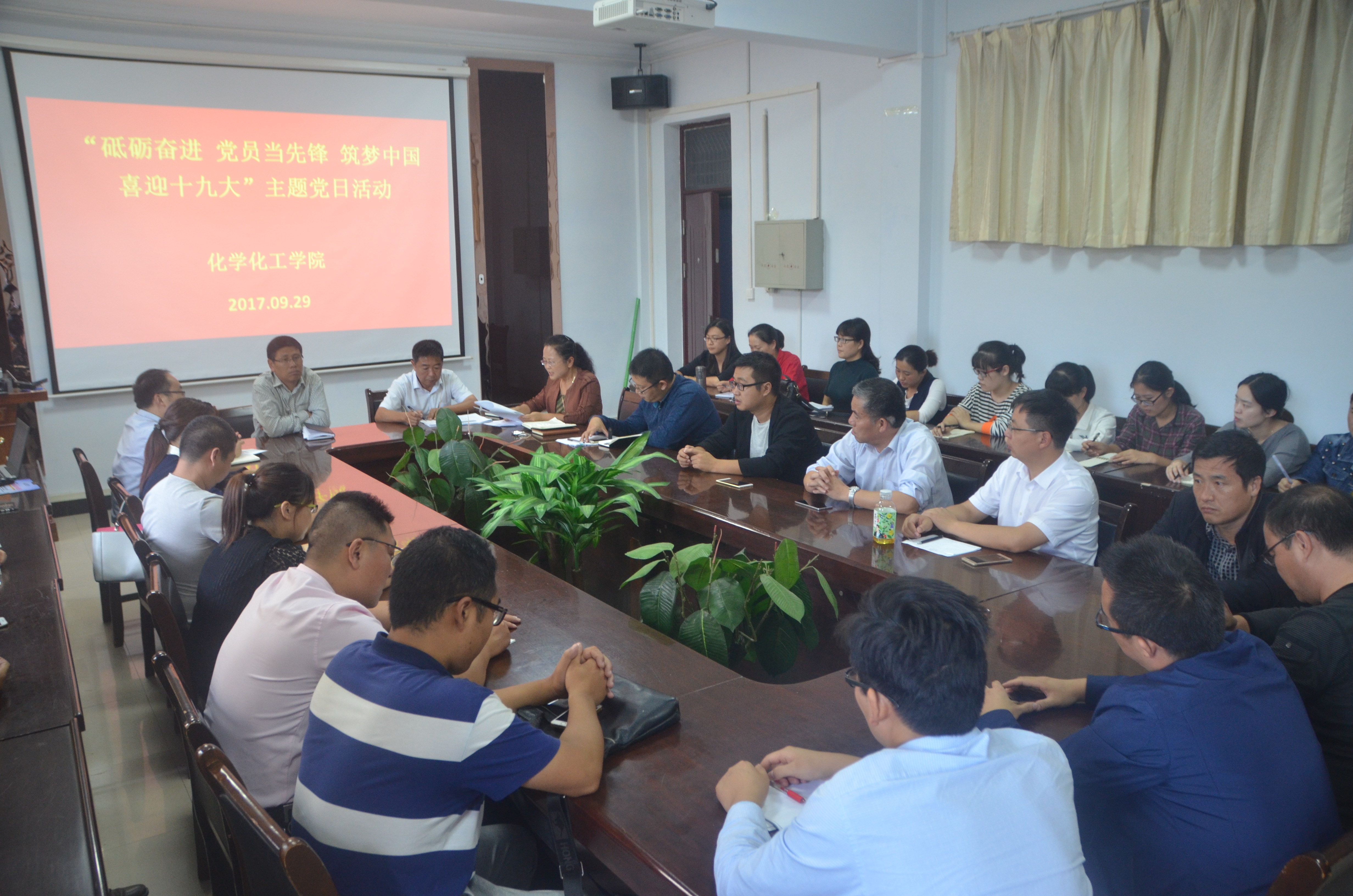 为庆祝伟大祖国的68岁华诞、迎接党的十九大胜利召开,9月29日,我院于我校文化路校区7号楼会议室召开了以“砥砺奋进,党员当先锋,筑梦中国,喜迎十九大”为主题的党日活动,我院党总支书记韩忠民、院长瞿鹏、党总支副书记刘瑛、副院长孟团结出席了此次活动。我院全体师生党员参加了此次活动。活动由韩忠民书记主持。