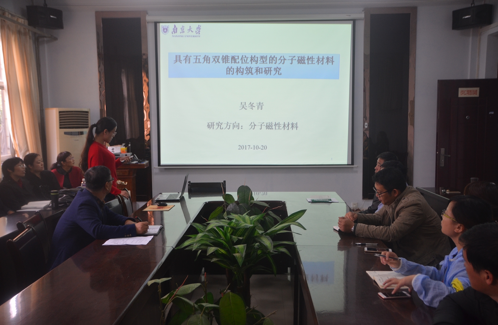 2017年10月20日下午,我院教师吴冬青博士在文化路校区7号楼院会议室做了题为《具有五角双锥配位构型的分子磁性材料的构筑和研究》学术报告会。报告会由院长瞿鹏主持,麻豆精品㊙️国产传媒AV全体老师参加了报告会。