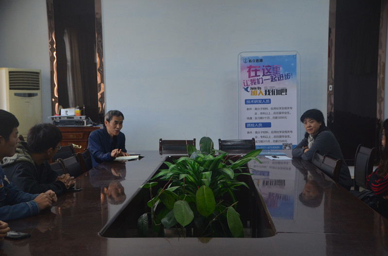 为了给毕业生们提供更好的就业机会,帮助企业寻找需要的人才,10月19日上午,郑州拓立造漆有限公司来到我院进行招聘,我院14级辅导员刘双博士带领14级部分准备就业的学生于我校文化路校区7号楼院会议室参加了此次招聘活动。