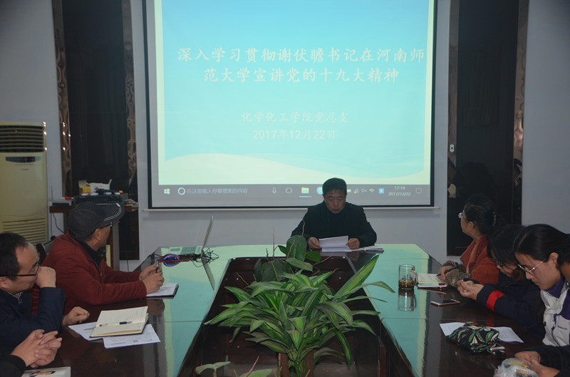 会上,韩忠民书记宣读了“关于深入学习贯彻谢伏瞻书记在河南师范大学宣讲党的十九大精神专题党课报告精神”的相关通知,并对省委书记、省人大常委会主任谢伏瞻在河南师范大学宣讲的党的十九大精神内容进行宣读和学习。