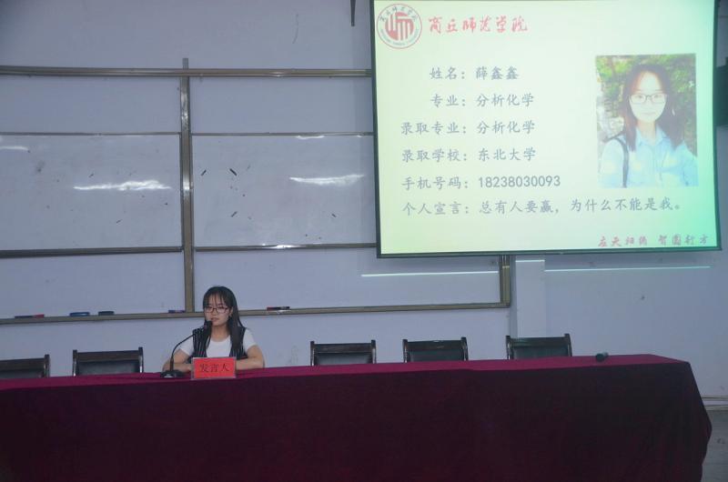 之后六位优秀毕业生代表受邀分享了考研及就业经验。考研毕业生代表薛鑫鑫、王雪扬、翟腾飞、徐雅兰分别从择校、备考、复试等方面分享了考研的实战经验及心里路程;就业毕业生代表冯勇鹏、崔佳明同学纷纷表示实习培训可以积累很多工作经验,实习期间一定要坚持不懈、任劳任怨、认真学习、多与同事交流工作心得体会,同时要充满自信、树立正确的就业观。