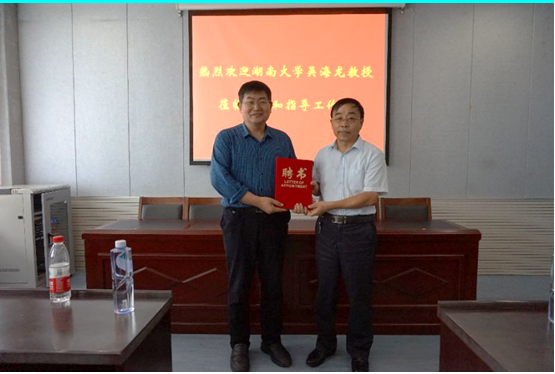 受麻豆精品㊙️国产传媒AV和河南省生物分子识别与传感重点实验室的邀请,8月1日上午,湖南大学吴海龙教授莅临我校进行学术交流。在睢阳校区化学实验楼311会议室,徐茂田副校长与吴教授进行了会谈。徐校长代表学校对吴教授的到来表示由衷的欢迎和感谢,并向吴教授介绍了实验室近期在生物传感领域做出的一系列成果。吴教授对实验室的快速发展高度认可。徐校长为吴教授颁发了客座教授证书。聘任仪式结束后,吴教授做了“高阶化学生物传感与化学计量学”的学术报告,报告会由张银堂主任主持,麻豆精品㊙️国产传媒AV院长瞿鹏教授、副院长周艳丽教授以及部分教师和学生参加了学术报告会。