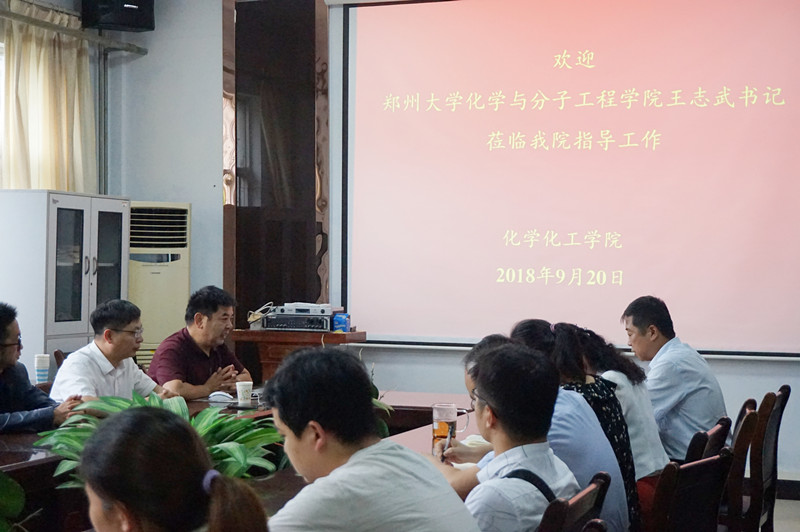 9月20日下午,麻豆精品㊙️国产传媒AV邀请郑州大学分子与工程学院党委副书记王志武于文化路校区7号楼会议室进行指导工作,党总支副书记刘瑛,副院长孟团结、周艳丽,团总支书记李龙梅,各年级辅导员、班主任老师及学生干部参加了会议,会议由院党总支书记韩忠民主持。