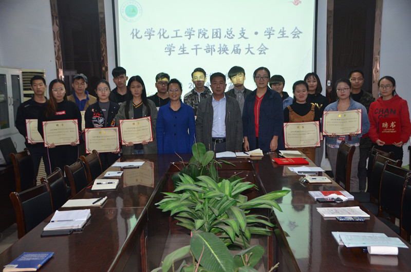 会议伊始,韩忠民书记首先宣布了新一任团学干部名单。接着,与会领导老师一起为上一届主席团成员及各部部长颁发聘书。随后刘瑛副书记发表讲话,她对老干部在职期间的工作表现给予肯定并表示感谢,同时祝贺新一届当选的学生干部。接着她对新老干部提出几点希望,希望老干部能够继续做好“传、帮、带”,耐心帮助新一届干部做好学院各项工作,同时提高政治站位,起到模范带头作用;新一任干部要尽快适应新工作岗位,心往一处想,劲往一处使,创新工作方式方法,做好先锋模范作用,提高政治站位。最后韩书记作总结讲话,他希望新一任干部可以紧紧围绕团总支、学生会做好各自做好本职工作并互相帮助,同时要认真学习党的十九大精神和习近平新时代中国特色社会主义思想,做好意识形态及民族宗教工作,在网上不要随便跟帖发声,最重要的是要正确处理好工作与学习的关系。