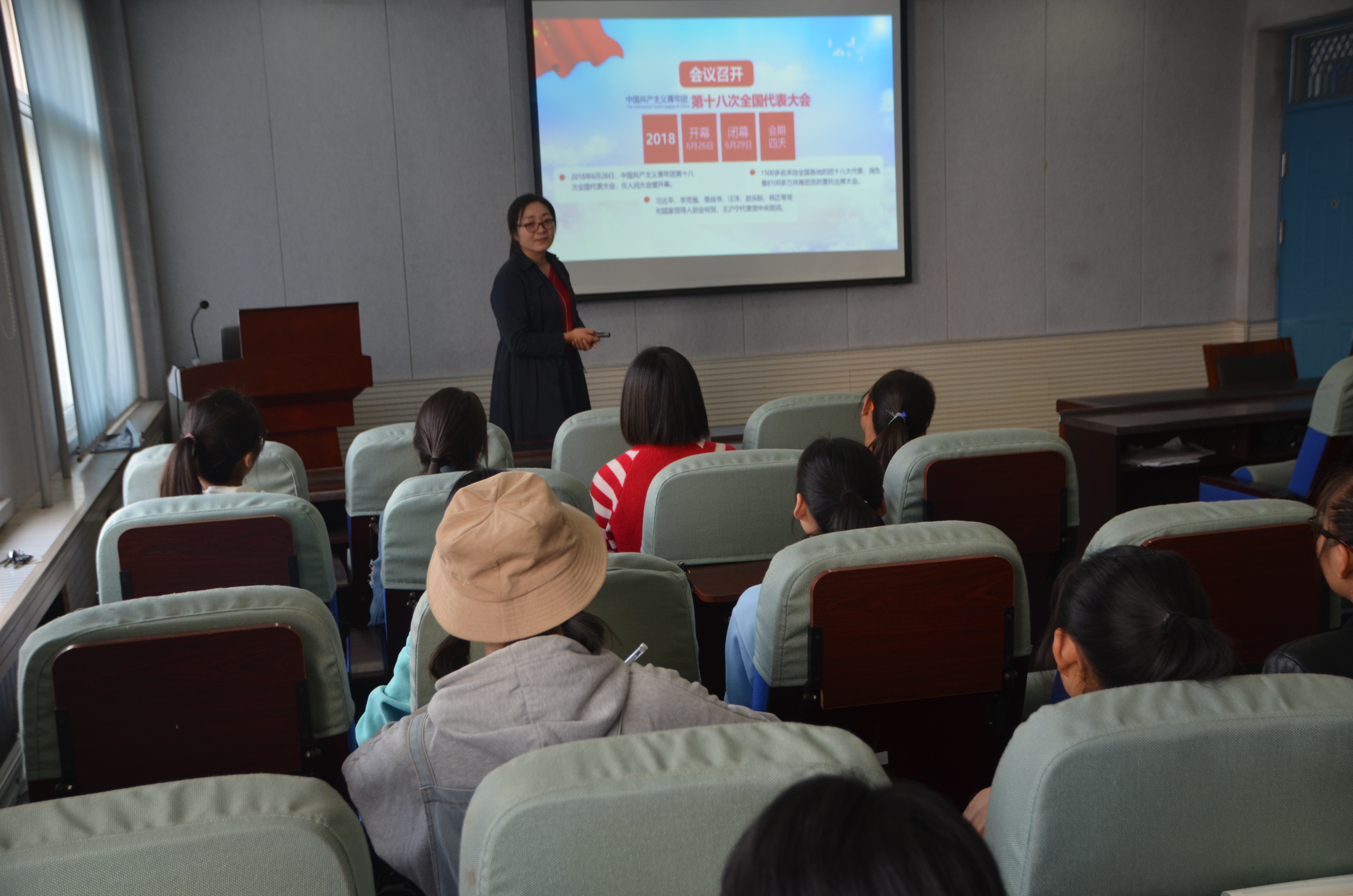为了让同学们对共青团的职责和精神有更深刻的了解,11月2日,麻豆精品㊙️国产传媒AV于睢阳校区化学实验楼311报告厅开展以“奋斗新时代,出彩新青年”为主题的学习共青团十八大精神团课。18级各支部共青团员代表参加,院团总支书记李龙梅主讲。