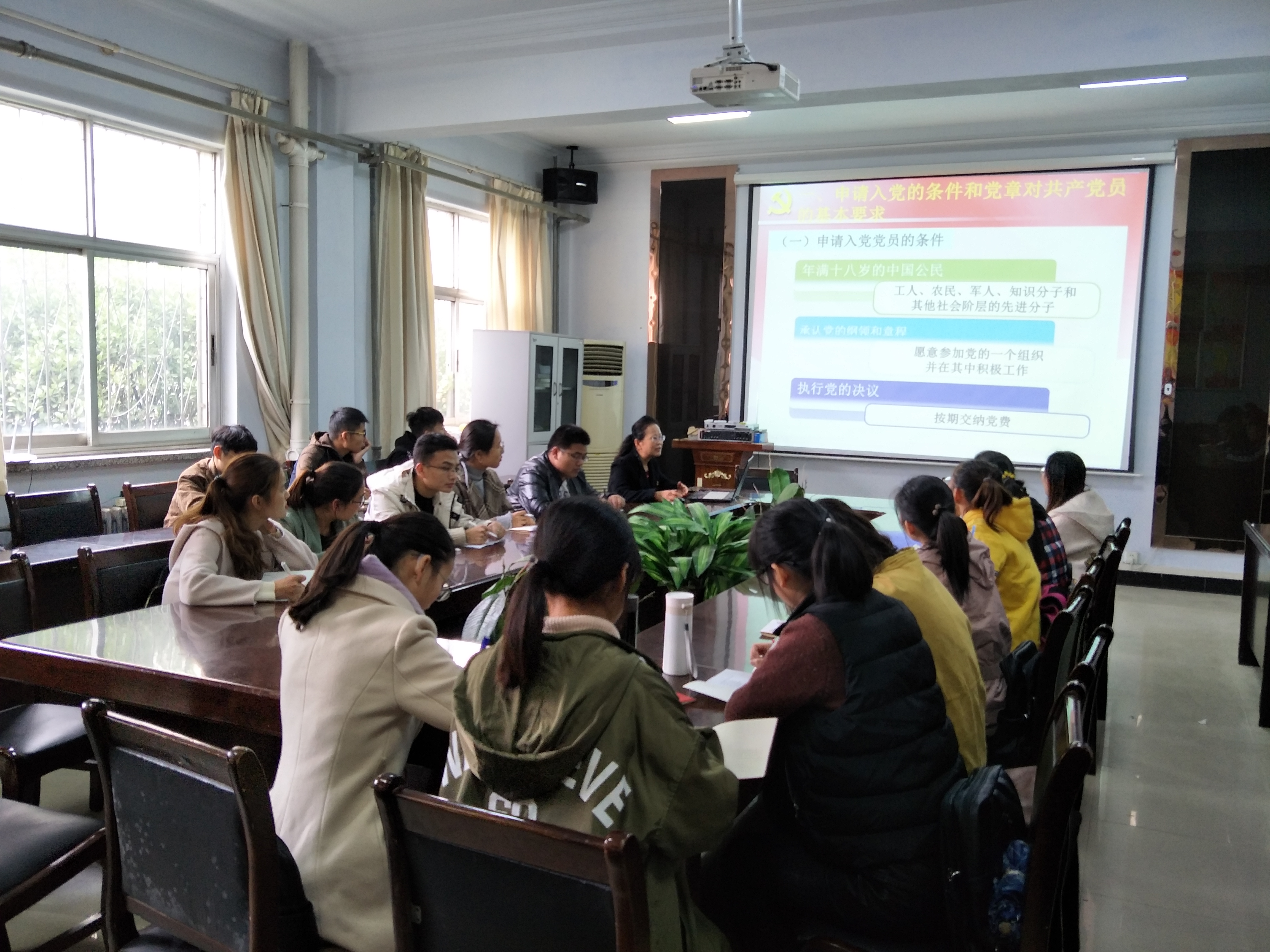 首先,刘瑛指出要学习贯彻新细则,把握党员发展程序,规范地做好党员发展工作。随后,刘瑛从申请入党的条件和党章对共产党员的基本要求,发展党员工作的方针、原则和程序,发展党员文本材料书写规范三个大方面为大家进行讲解。并着重强调了发展党员的工作程序是由党组织制定发展计划,个人自愿提出入党申请,而后党组织派人同申请入党人谈话,确定入党积极分子对其培养教育;确定发展对象并进行考察;确定预备党员并进行教育、考察和转正。