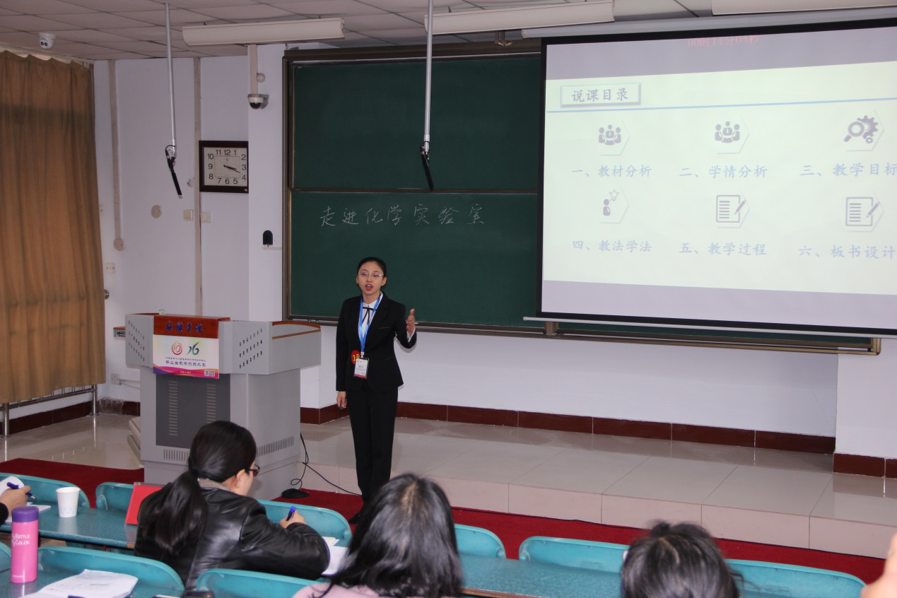 2018年11月16-18日,经过三天的紧张赛程,在新乡学院举行的河南省第十六届高等学校师范教育专业毕业生技能大赛正式落下了帷幕。经我院组织选拔,指导老师精心辅导,参赛选手刻苦钻研教学技能,我院15级化学(师范)专业曾文艳同学凭借优秀的说课技巧、清晰的教学思路、精彩的现场表现在大赛中获得初中化学组一等奖。