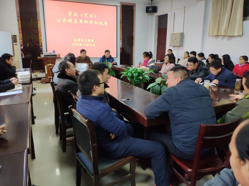 12月14日下午,麻豆精品㊙️国产传媒AV于睢阳校区7号楼会议室召开教职工会议,集中学习《宪法》之公民基本权利和义务,会议由学院党总支书记韩忠民主持。