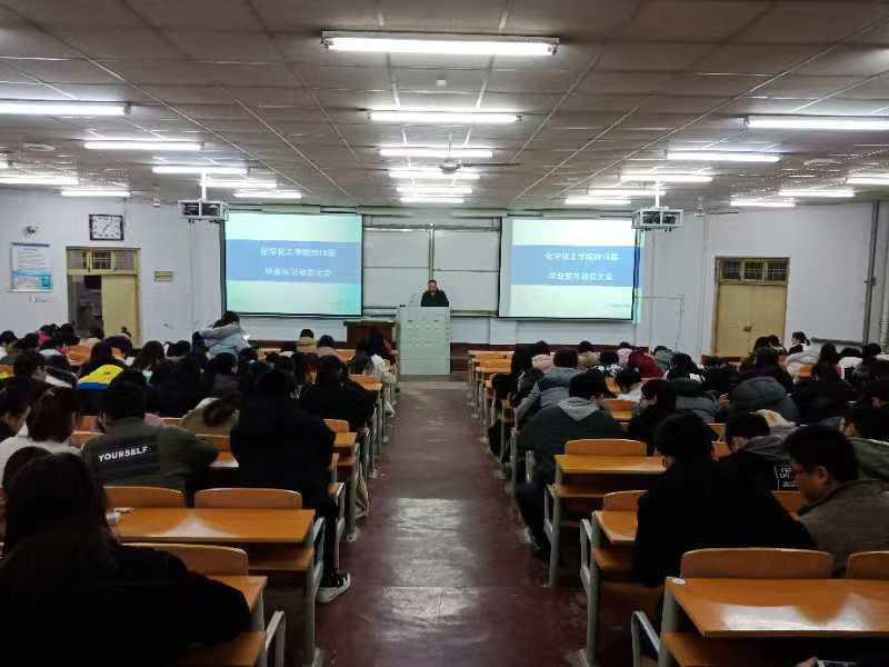 孟团结首先介绍了毕业实习的目的、意义和药明康德新药开发有限公司等六家实习单位。并对此次实习工作提出要求:第一,毕业生要充分认识毕业实习的重要性。实习期间高标准严要求,规范言行,严格遵守实习单位的规章制度,杜绝安全事故的发生,不出现违法违纪行为。注意人身和财产安全。第二,实习前对企业开展调查,实习期间要有实习日志,撰写实习报告,填写实习鉴定表。第三,毕业生根据专业和自身实际情况选择实习单位,统筹安排毕业论文、毕业实习和研究生复试之间的关系。第四,辅导员和班主任老师,要经常联系实习同学,在实习过程中加强思想政治教育和职业道德教育,加强过程管理,确保实习工作有序开展,做好成绩评定及实习材料的收集工作。