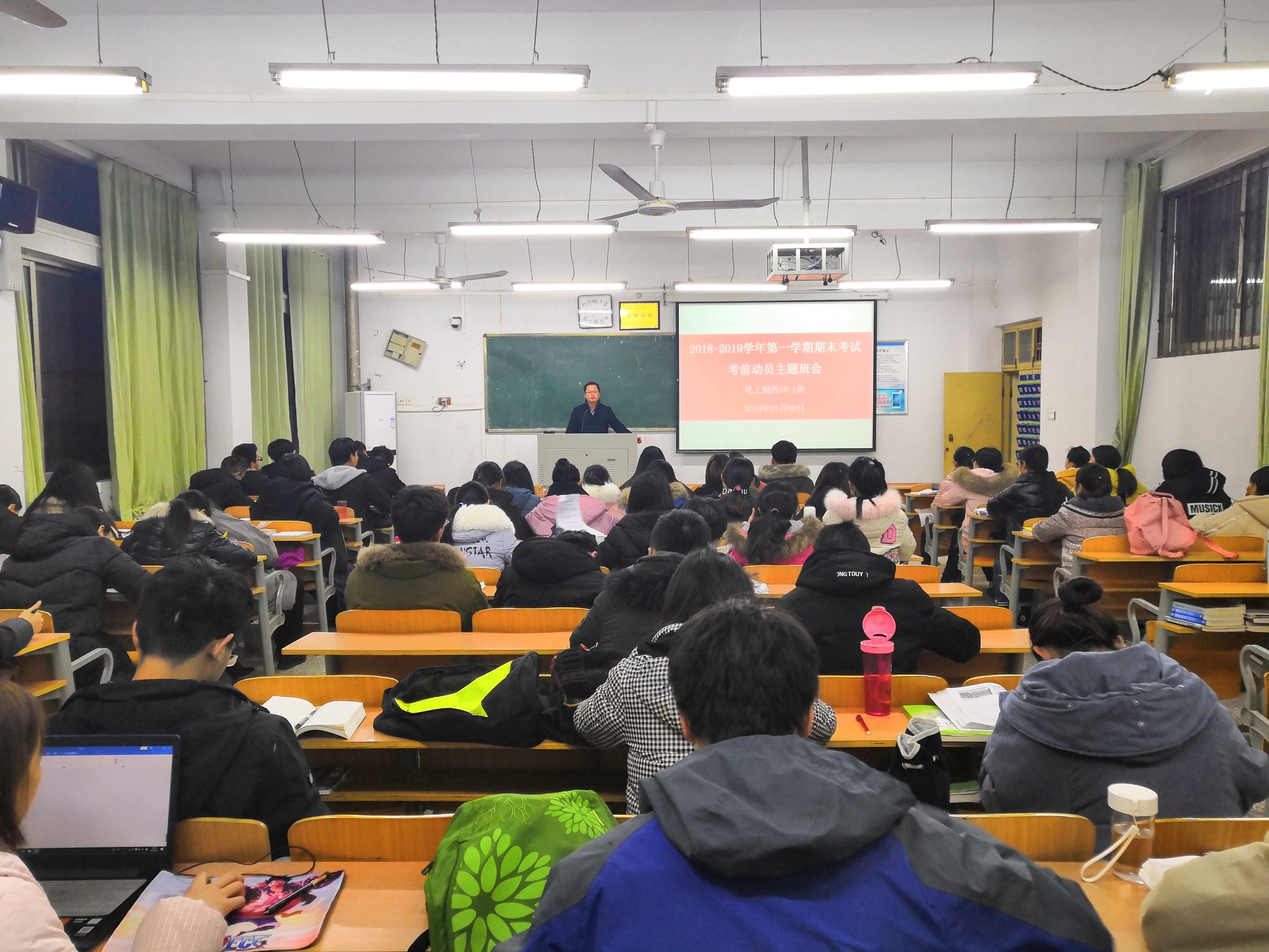 2019年1月6日晚,化工制药18-1班在1号楼408教室组织召开了2018-2019学年第一学期期末考试考前动员大会。班主任王涛老师主持此次会议,化工制药18-1班全体成员参加会议。