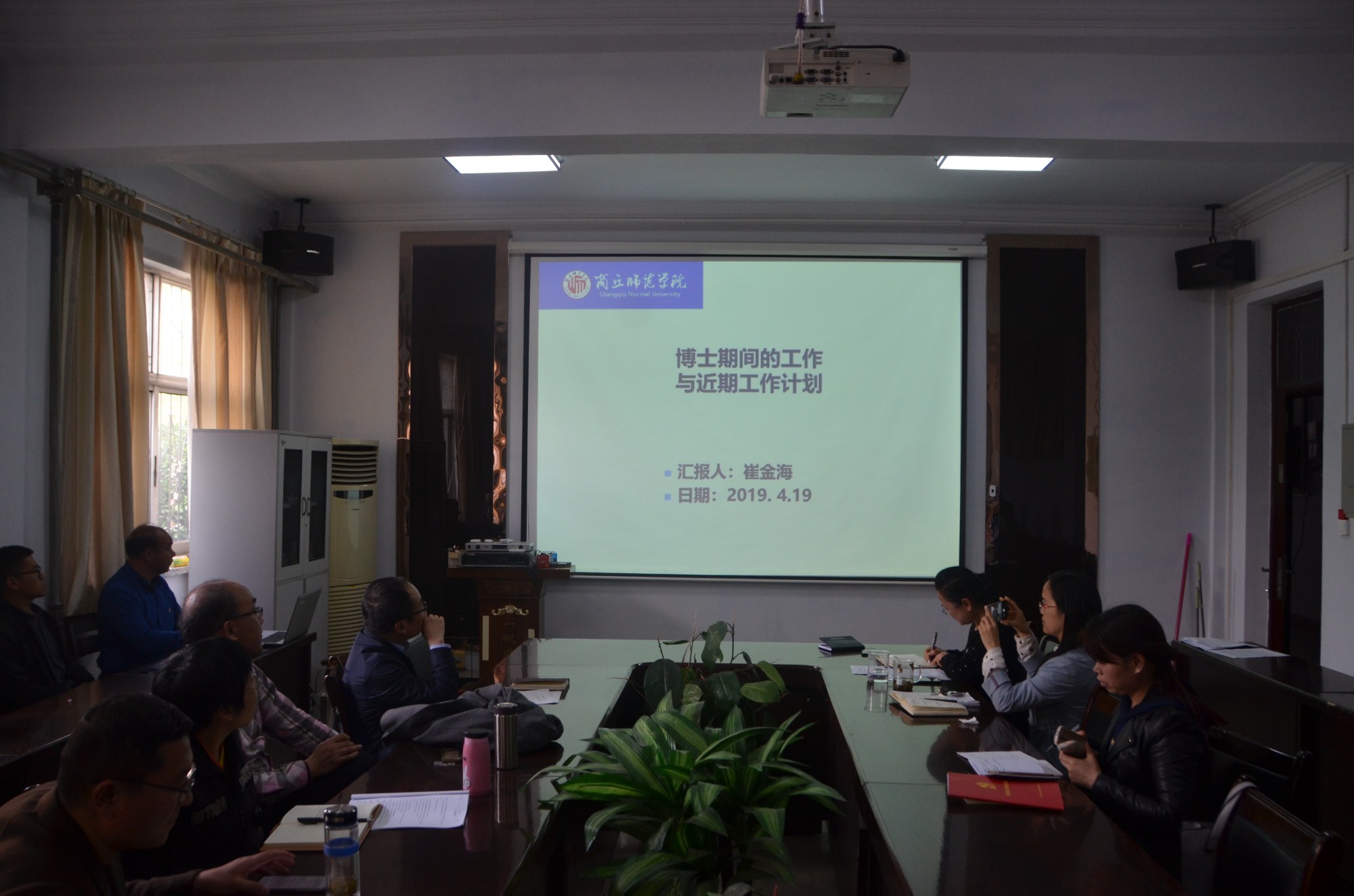 2019年4月19日下午,麻豆精品㊙️国产传媒AV副教授崔金海博士在文化路校区7号楼院会议室做了题为《苯并膦嗪并三苯二噁嗪酸性染料的合成与应用研究》的学术报告会。报告会由周艳丽副院长主持,麻豆精品㊙️国产传媒AV全体老师参加了报告会。