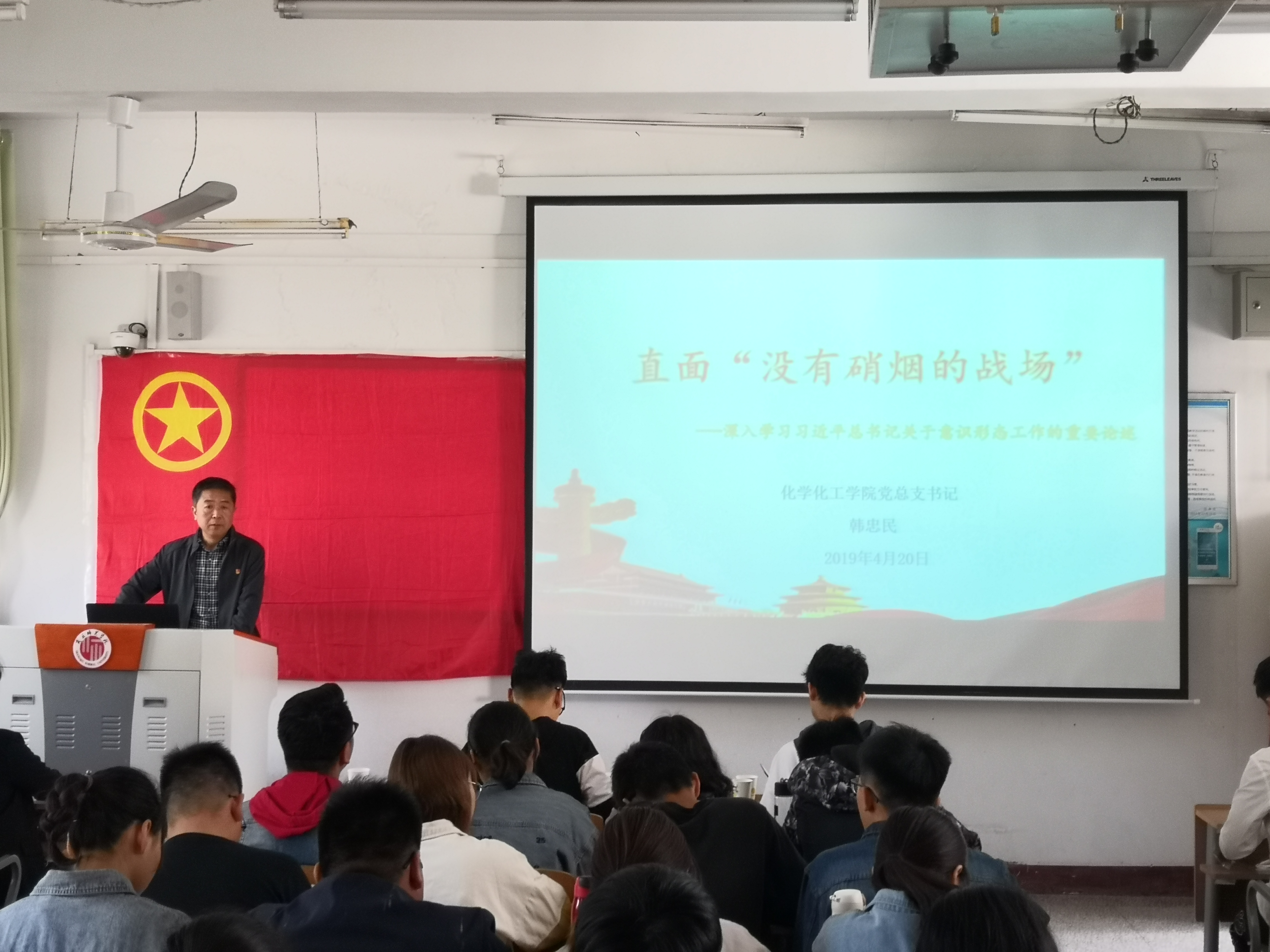为了提升青马学员的思想政治素质,帮助其了解意识形态的重要性,成长为中国特色社会主义事业的合格建设者和可靠接班人,4月20日上午,麻豆精品㊙️国产传媒AV于睢阳校区1号楼409教室举行了培训班第一讲“直面没有硝烟的战场”,第一期青马培训班全体学员参加,党总支书记韩忠民主讲。