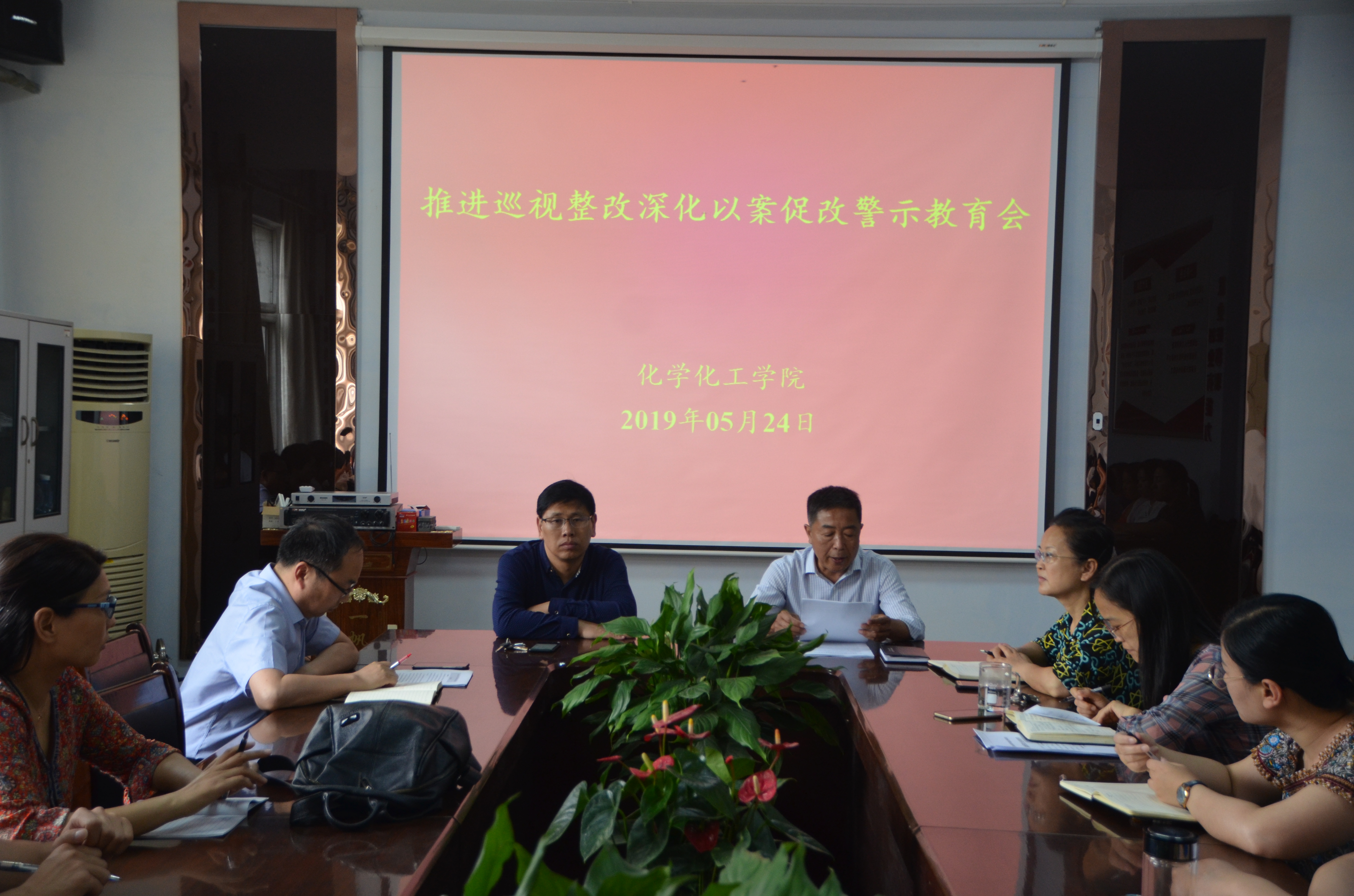 5月24日,麻豆精品㊙️国产传媒AV于睢阳校区7号楼会议室召开推进巡视整改深化以案促改警示教育会,全体教职工参加,党总支书记韩忠民主持会议。