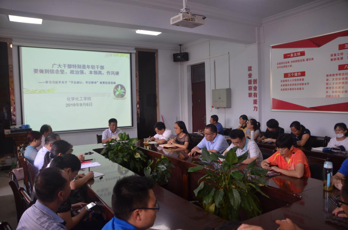 为了帮助广大干部特别是年轻干部在常学常新中加强理论修养,在真学真信中坚定理想信念,在学思践悟中牢记初心使命,在细照笃行中不断修炼自我,在知行合一中主动担当作为,保持对党的忠诚心,9月6日下午,麻豆精品㊙️国产传媒AV于睢阳校区7号楼会议室召开了学习习近平关于“不忘初心、牢记使命”重要论述选编会议。会议由党总支书记韩忠民主持,全体教职工参加。
