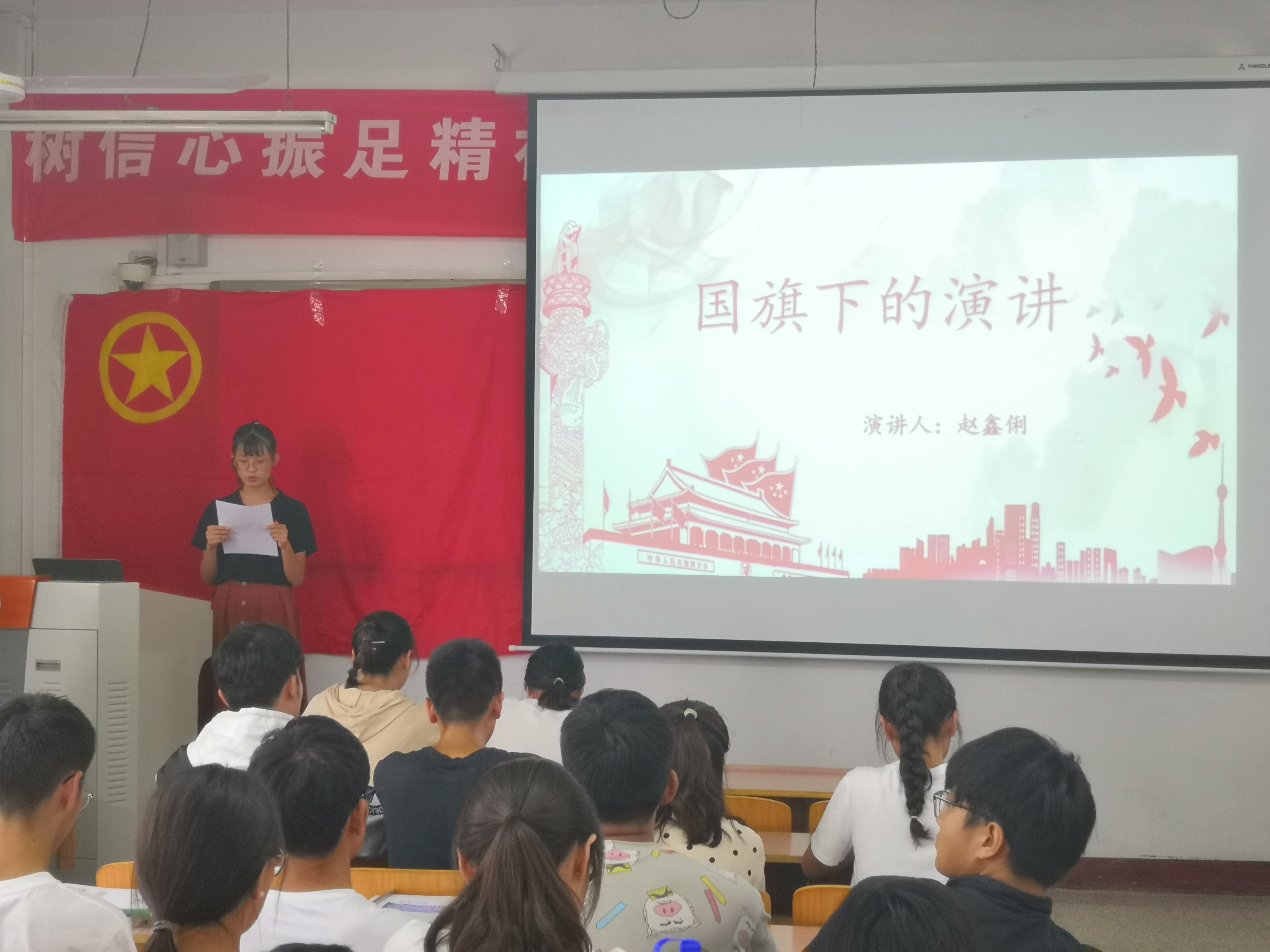 为深入学习宣传习近平新时代中国特色社会主义思想和党的十九大精神,隆重庆祝中华人民共和国成立70周年、纪念五四运动100周年,激发学院学生为实现伟大的“中国梦”而努力奋斗,9月25日中午,麻豆精品㊙️国产传媒AV于睢阳校区1号楼410教室举办“我与祖国共奋进-国旗下的演讲”主题团日活动。