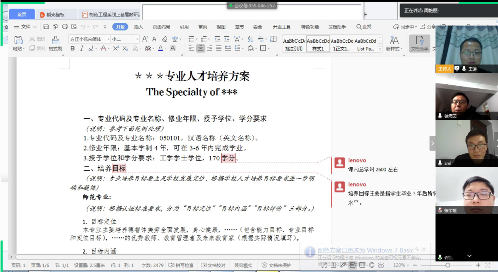 最后王涛老师表示,会后会把各位老师的意见和建议认真梳理总结上报学院。希望各位老师做好疫情防控工作的同时,认真开展线上教学,积极准备人才培养方案和课程教学大纲修订等工作,遇到问题老师们及时沟通交流,确保各项工作顺利进行。