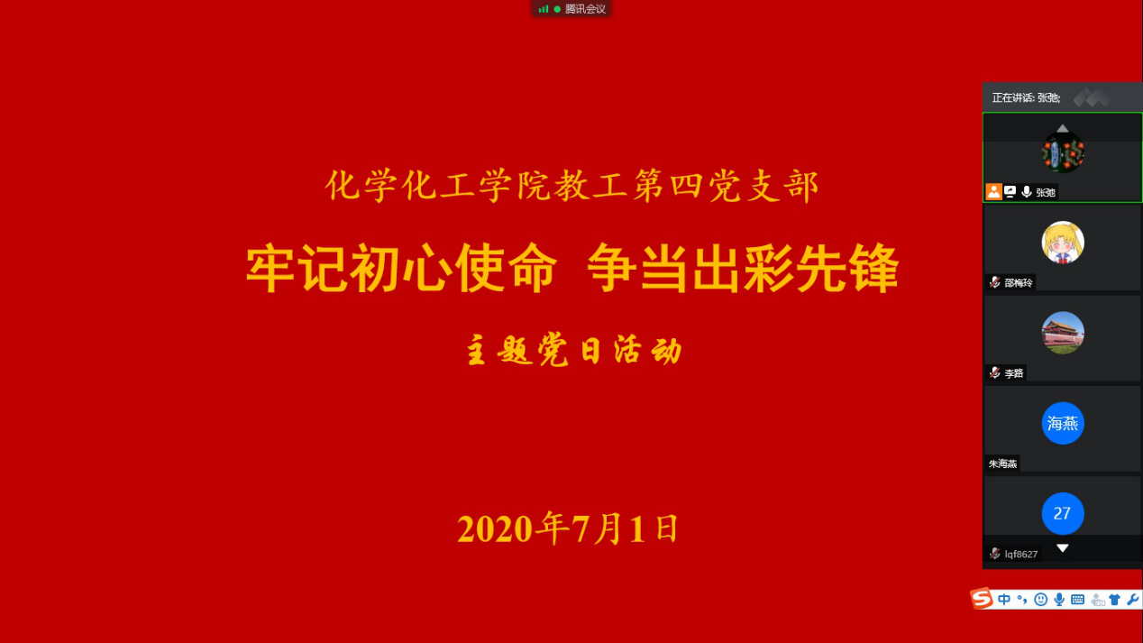 为庆祝中国共产党成立99周年,深化“不忘初心、牢记使命”主题教育成果,麻豆精品㊙️国产传媒AV教工第四党支部于2020年7月1日在线开展了“牢记初心使命、争当出彩先锋”主题党日活动。