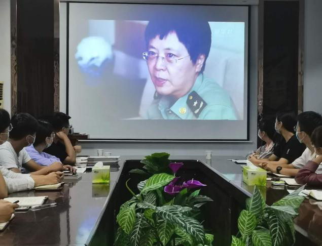 活动开始,杜秋晨为大家播放抗击新冠肺炎疫情表彰大会视频,钟南山、张伯礼、张定宇、陈薇四位抗疫英雄接受表彰。有人步伐铿锵有力,有人步履蹒跚,他们多少个日日夜夜都在与新冠肺炎作斗争。国家表彰的是一种悬壶济世、舍己为人的责任担当;人们致敬的是一种敢于牺牲、无私奉献的精神境界。随后,杜秋晨为大家播放新华社记者采访陈薇的视频,视频中,陈薇提到自己半年黑发变白发的画面,让人泪目。采访中,陈薇表示自己也会有牵挂,也会有退缩,但军人的使命感、责任感让她坚守岗位,冲锋在前,只为了人民能少受病魔的折磨。学习过程中,在座每一个人都热血沸腾,怀着崇高的敬意致敬每一位抗疫英雄。