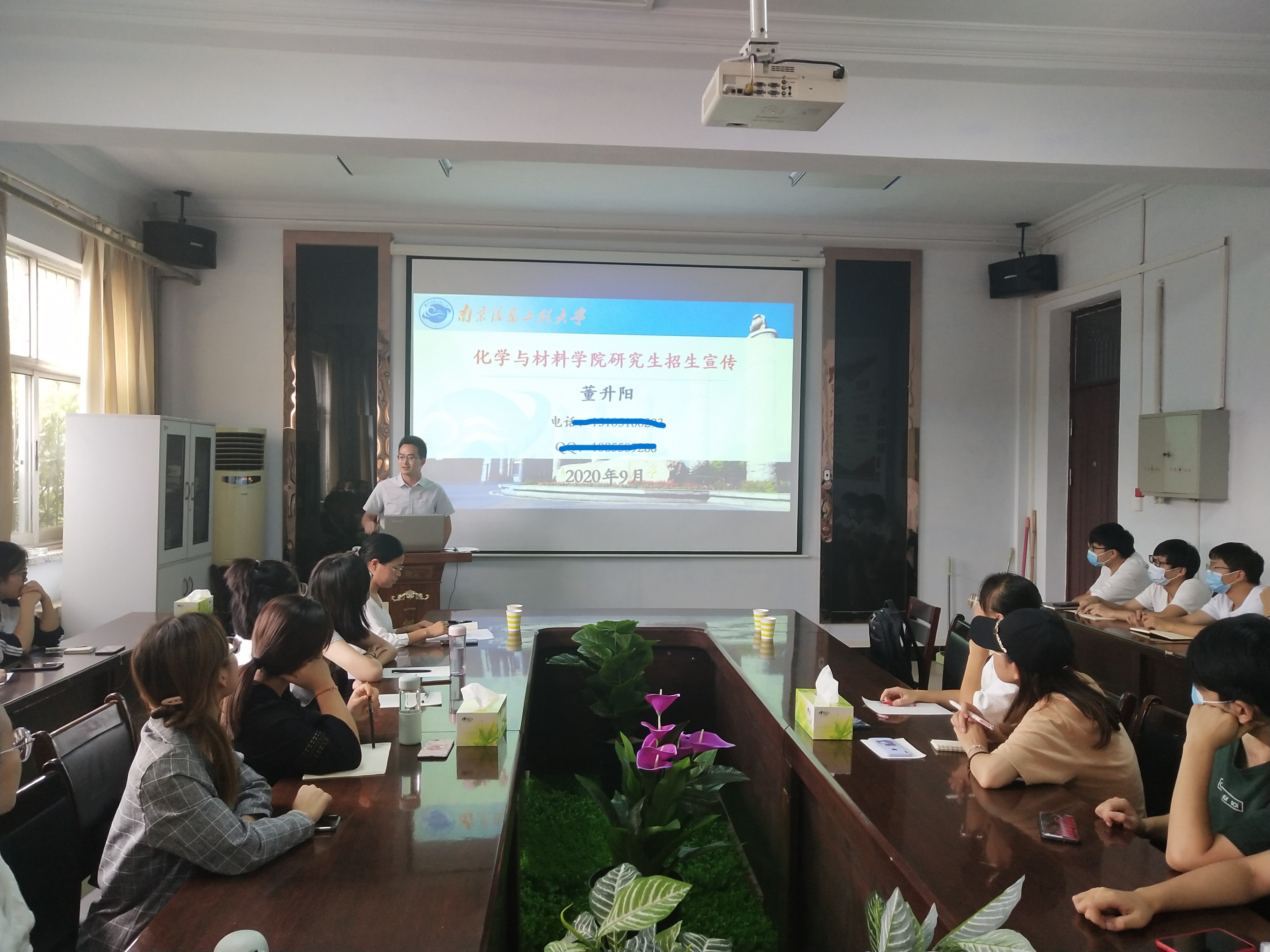 9月20日下午,麻豆精品㊙️国产传媒AV于睢阳校区7号楼会议室举行了“南京信息工程大学化学与材料学院研究生招生宣讲”活动,2021届毕业生和部分18级学生参加,南京信息工程大学化学与材料学院教授董升阳主讲。