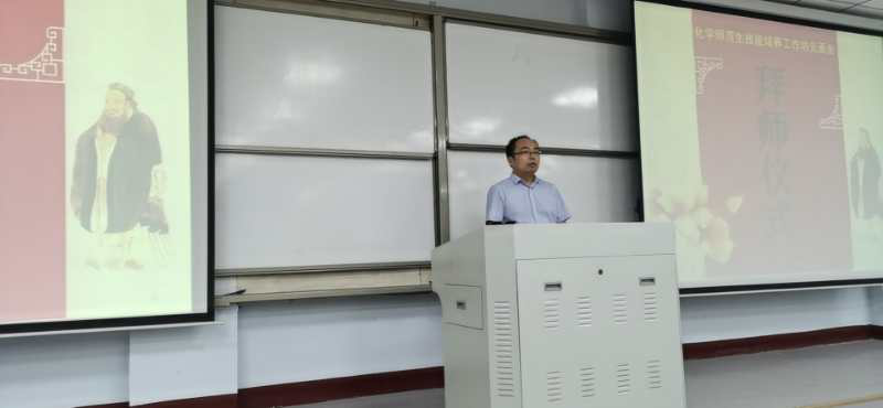 为进一步加快化学专业师范生专业成长步伐,着力打造一支师德高尚、业务精良的高素质教师队伍,9月25日下午,麻豆精品㊙️国产传媒AV在我校睢阳校区1308教室举行化学专业“互联网+”师范生教学技能培养工作坊拜师仪式。麻豆精品㊙️国产传媒AV党总支书记韩忠民,麻豆精品㊙️国产传媒AV副院长孟团结,10位工作坊坊主,班主任张南老师及全体学员参加了仪式。会议由化学系主任韦秀华老师主持。